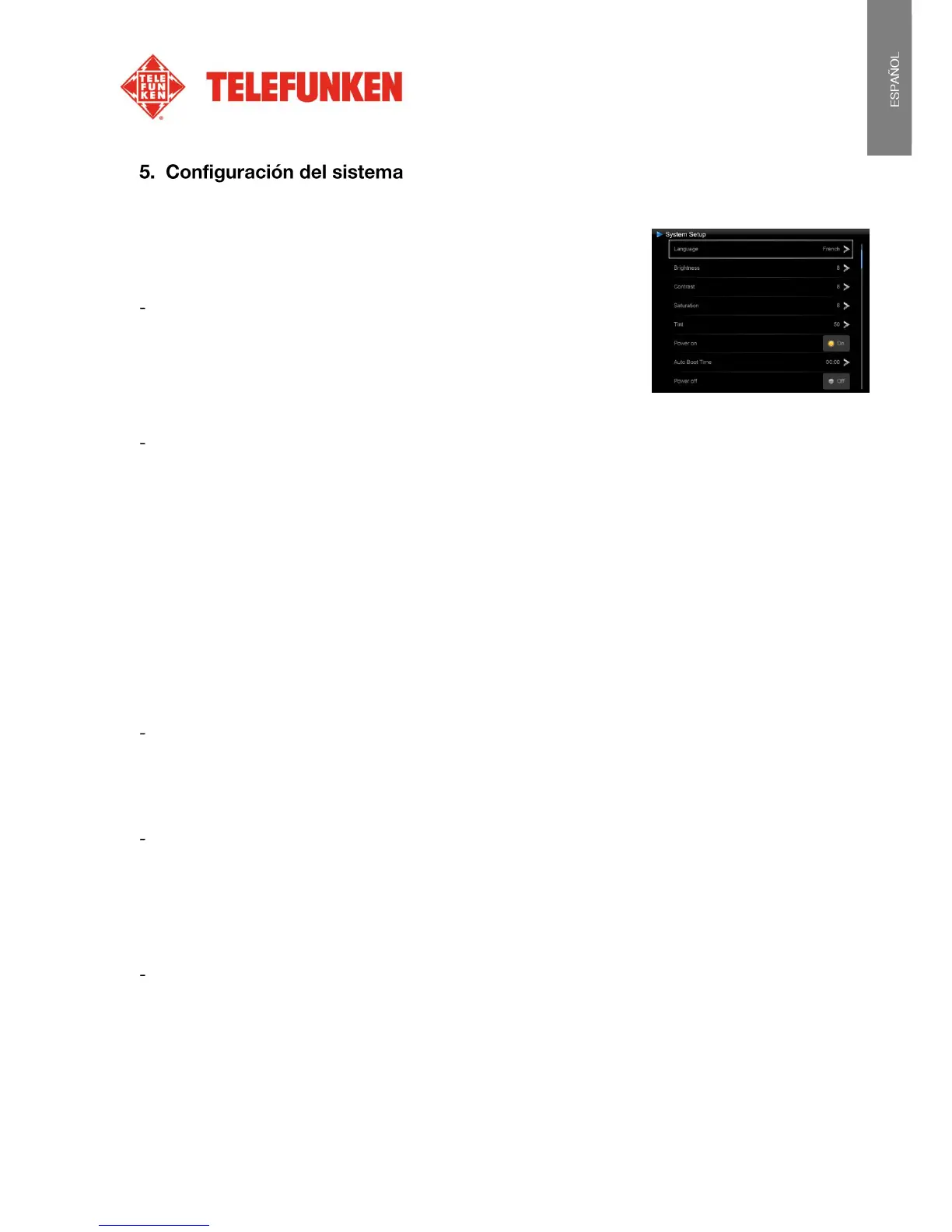 Seleccione «Idioma» mediante los botones de «Arriba / Abajo» del mando a distancia y presione