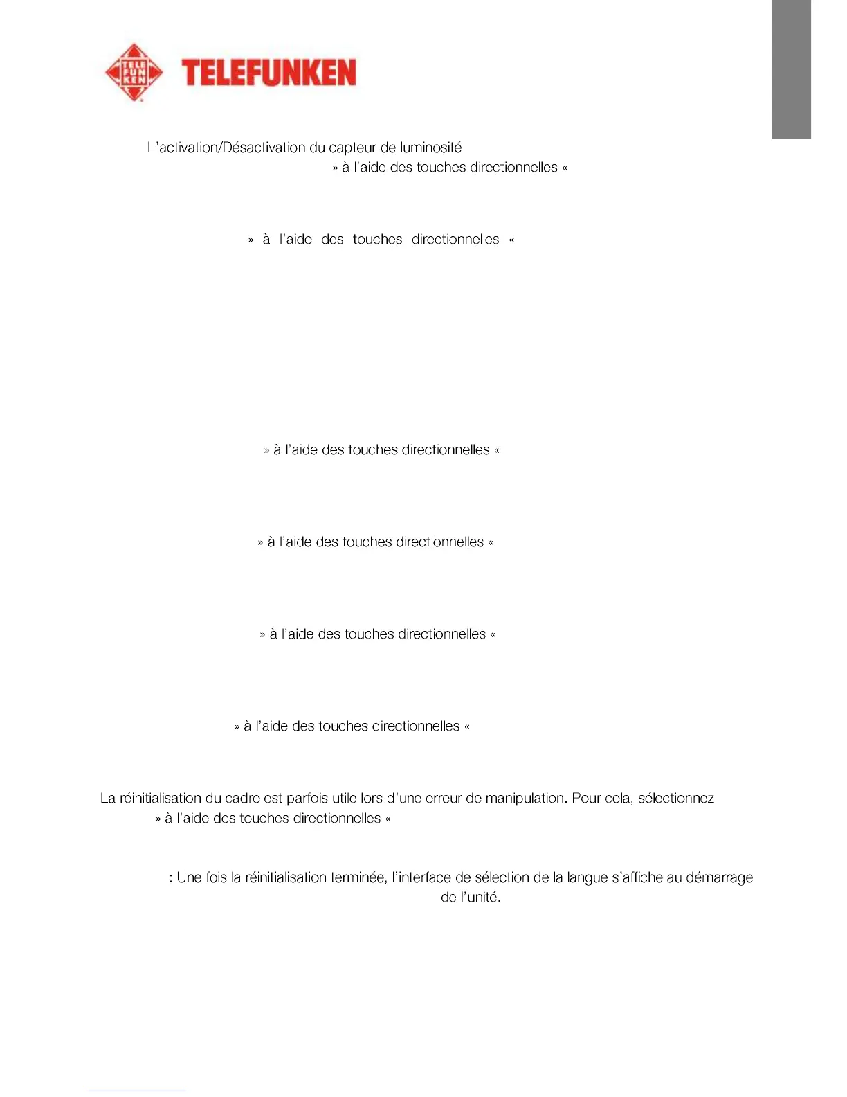 appuyez sur la touche « Enter », utilisez les touches directionnelles « Gauche/Droite » pour régler le niveau