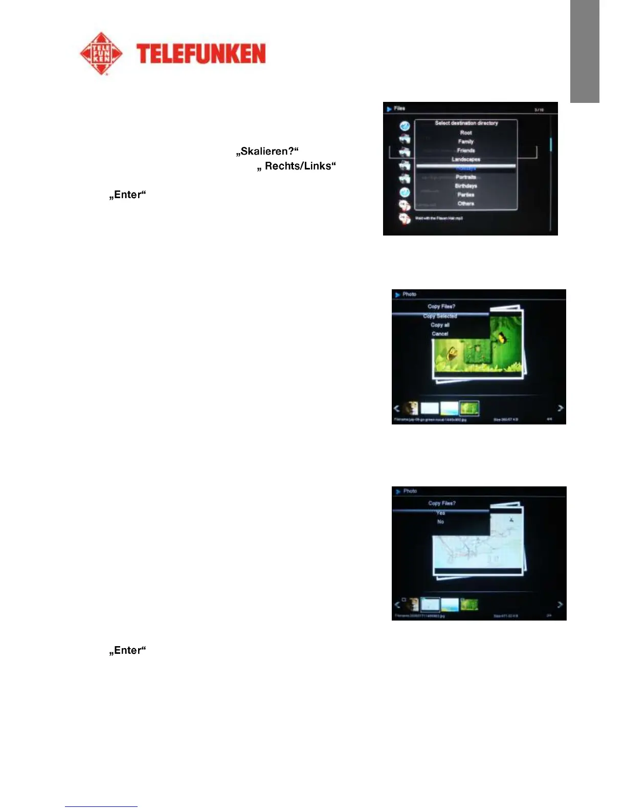 und „bestätigen“ Sie. Drücken Sie auf „Enter“. Ihre Fotos werden nun in den internen Speicher