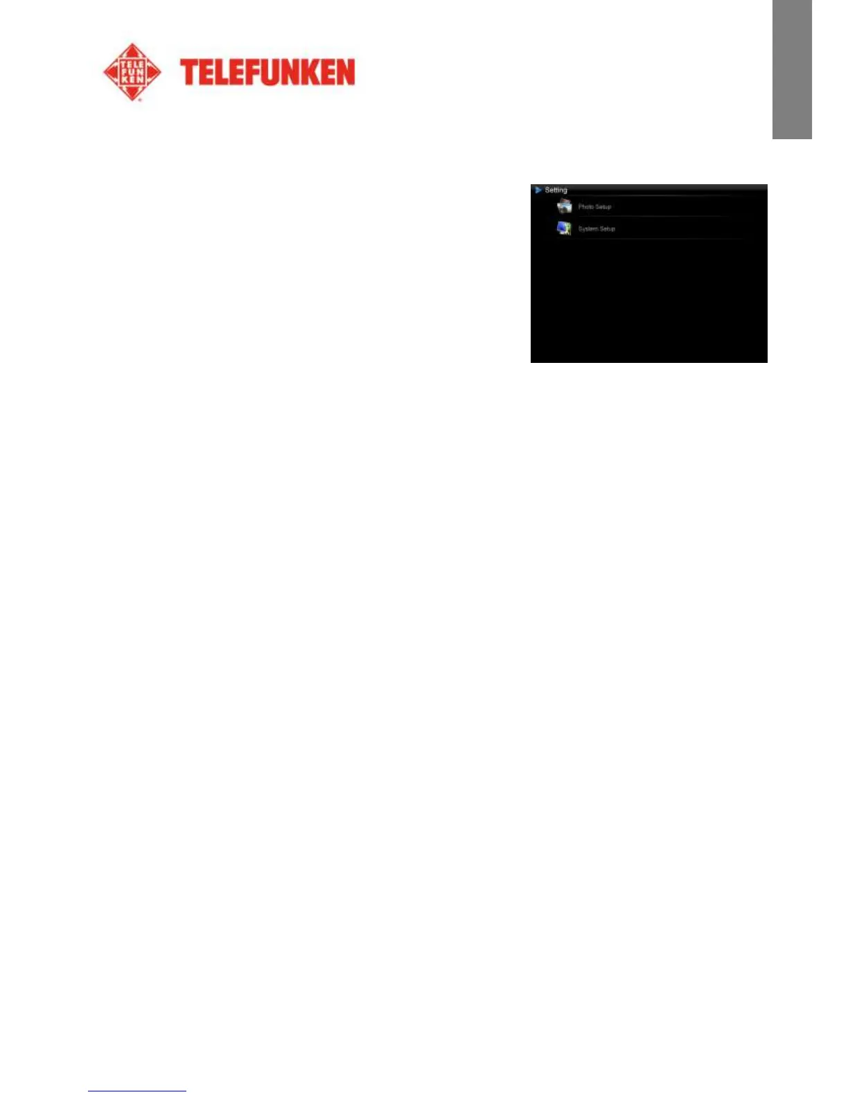 Seleccionar “Configuração de Foto” usando as teclas “Cima/Baixo” no controlo remoto, depois premir