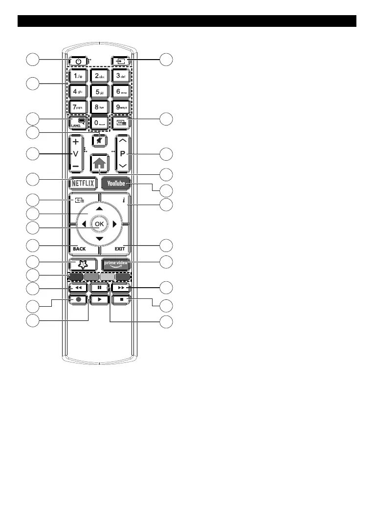 2. Numeric buttons: Switches the channel, enters