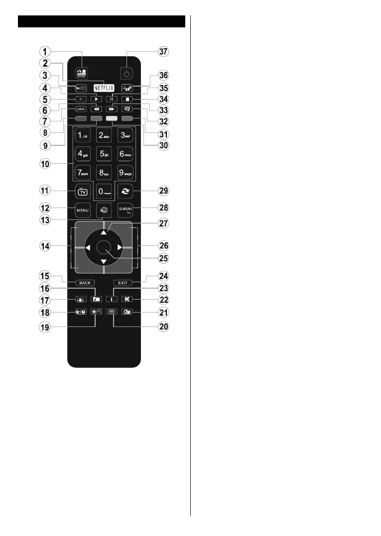 37. Standby: Switches On / Off the TV