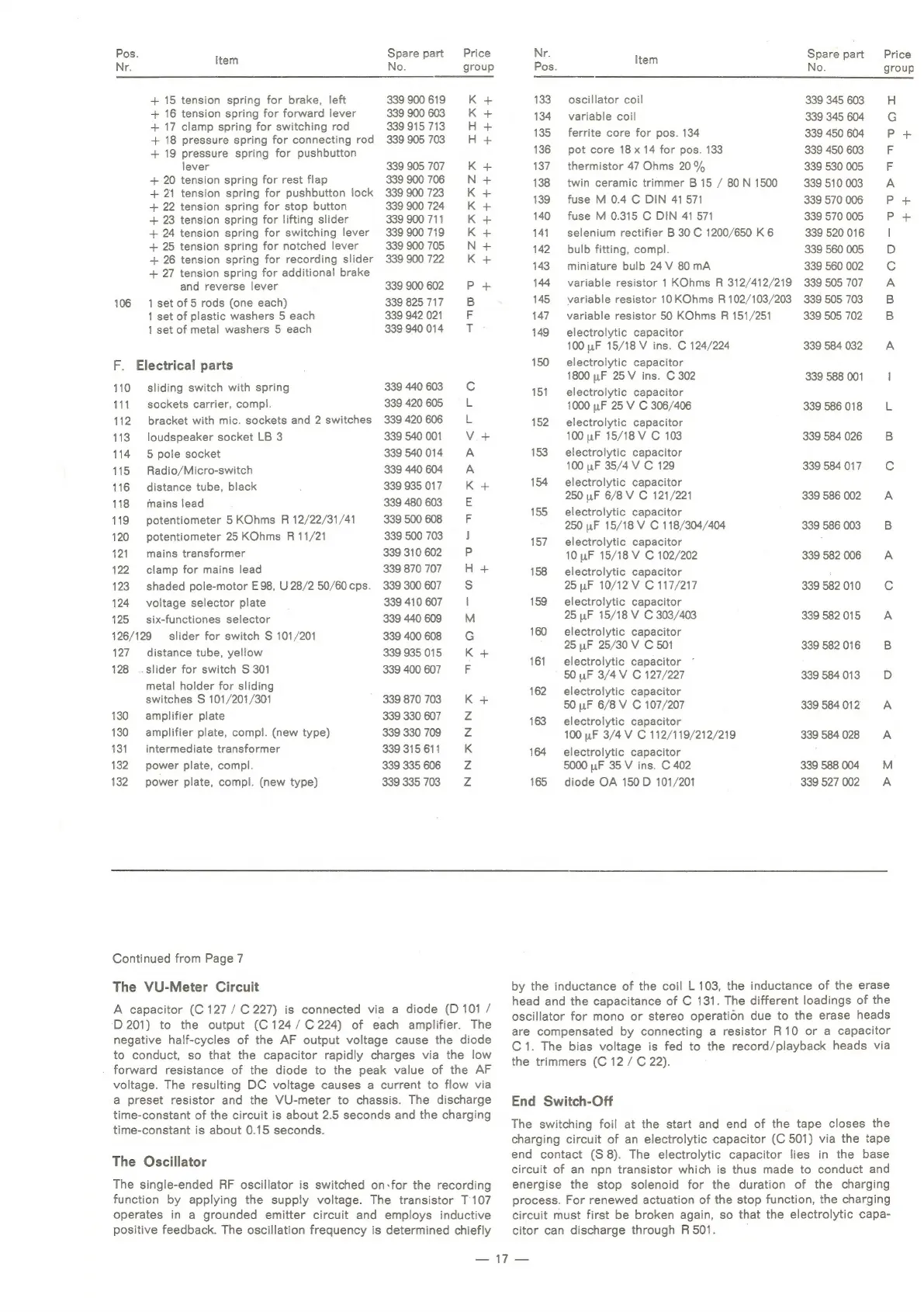 Telefunken M 204 E - VU-Meter Circuit Operation; Oscillator Circuit Function; End Switch-Off Mechanism