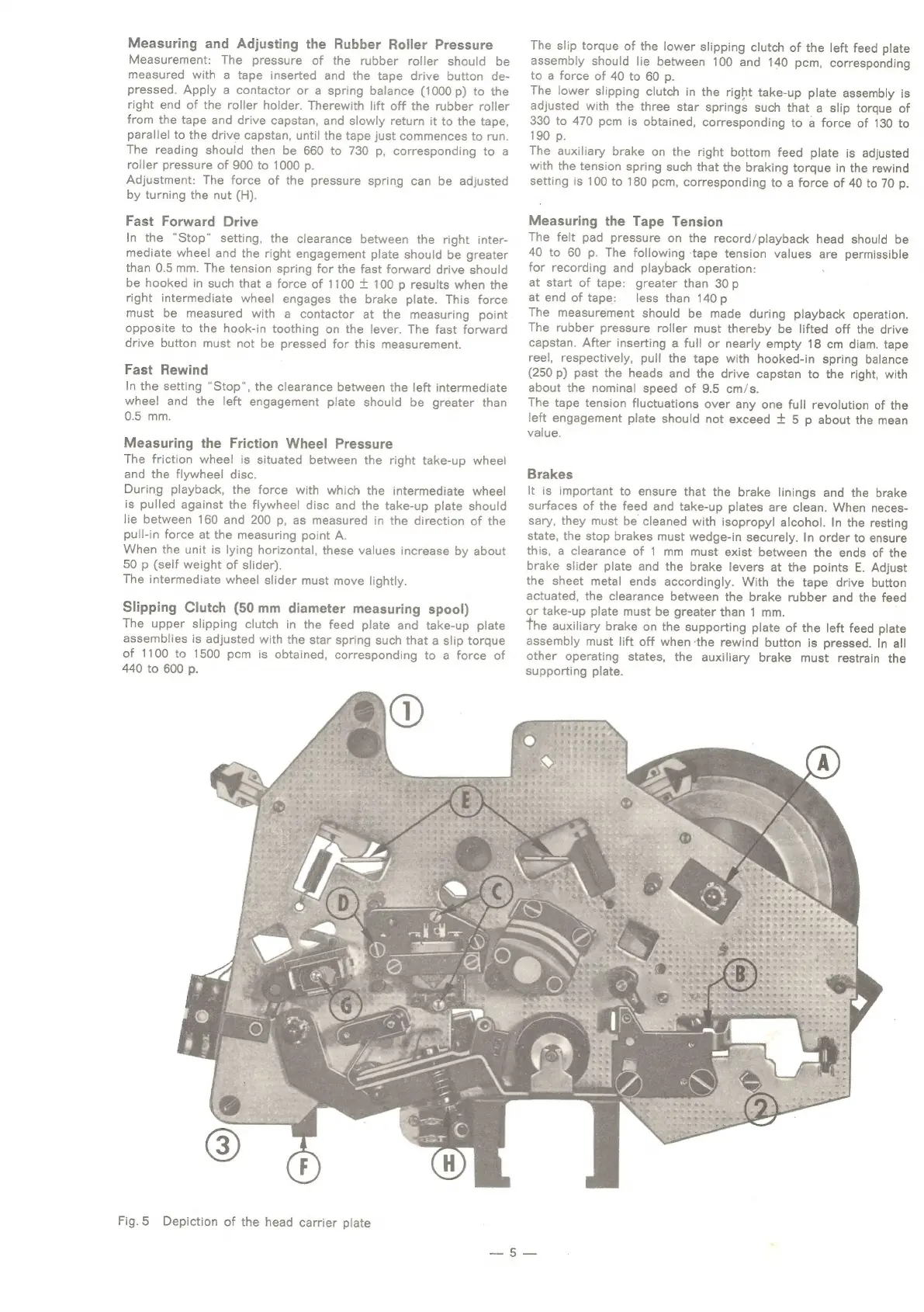 Telefunken M 204 E - Rubber Roller Pressure Measurement; Drive Mechanism Adjustments; Clearance Checks (FF;Rewind); Friction Wheel, Slipping Clutch, Tape Tension, and Brakes