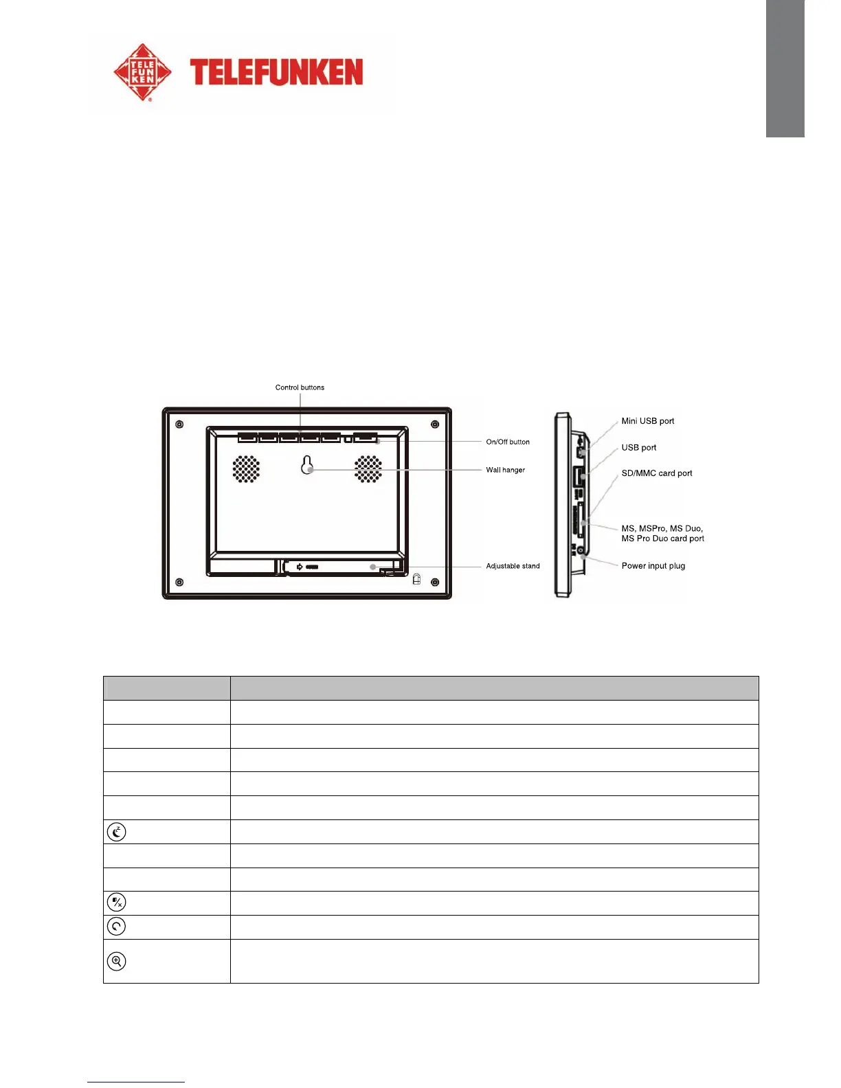 Thank you for your recent purchase of a TELEFUNKEN “RUBY Series” digital photo frame. Before using