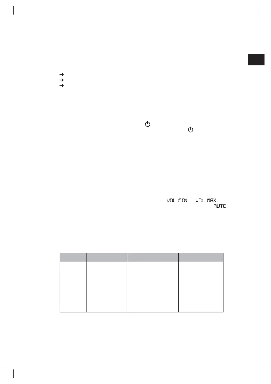 Drehen Sie den Lautstärkeregler (1) oder drücken Sie die Tasten VOL- und VOL+ (37) auf