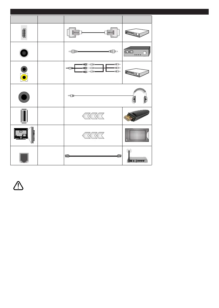 If you want to connect a device to the TV, make sure that both the TV and the device are turned off before making