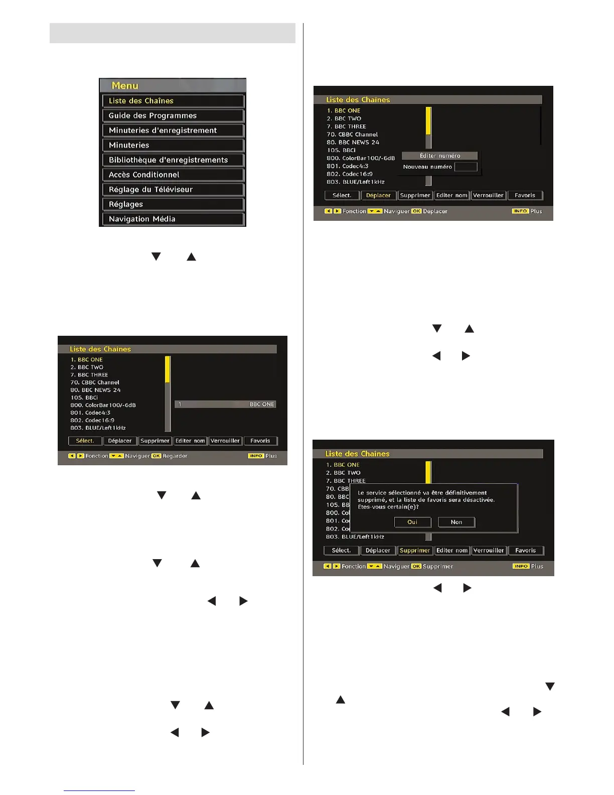 “Sélectionner” (OK ) dans le menu Channel List (Liste