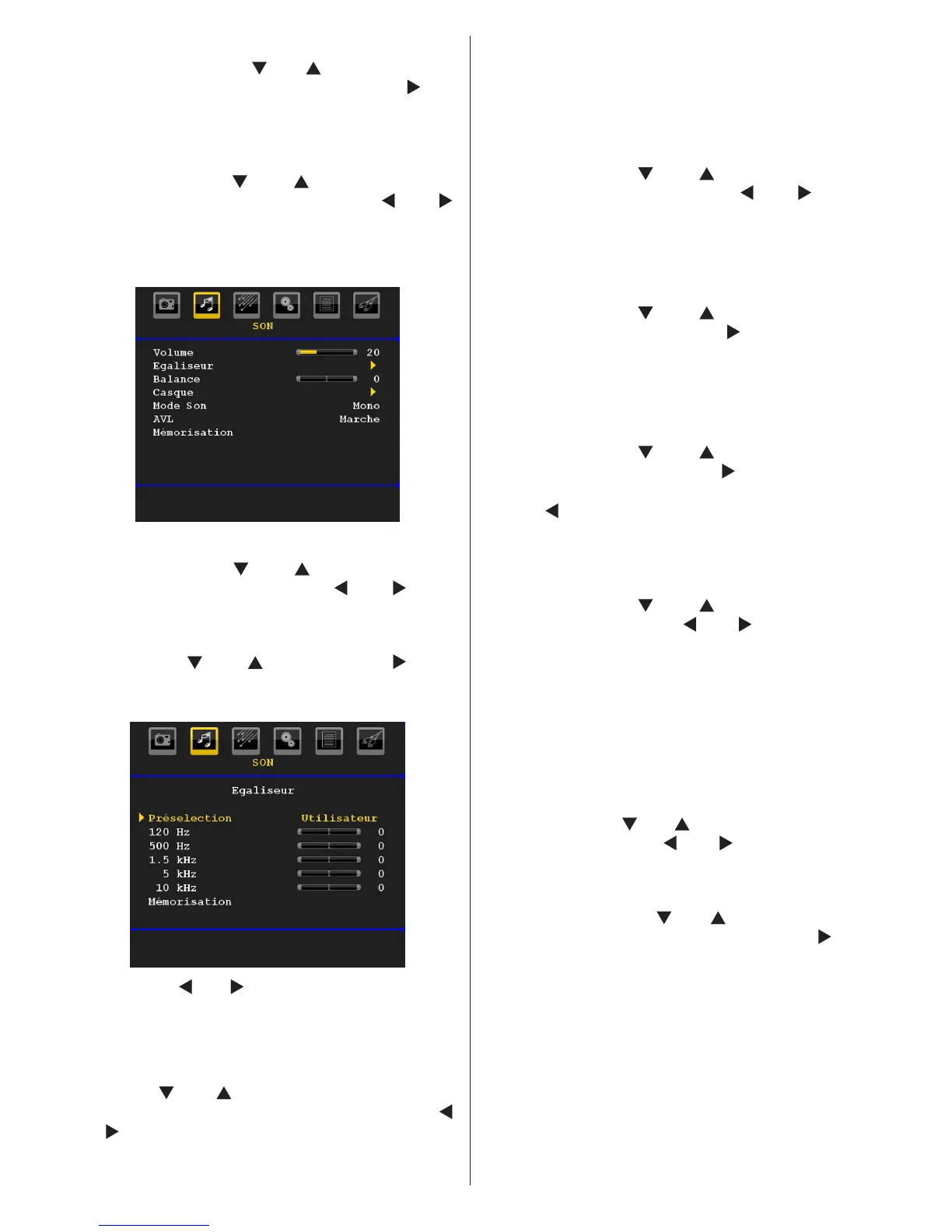 sélectionner Égaliseur. Appuyez sur la touche “” pour