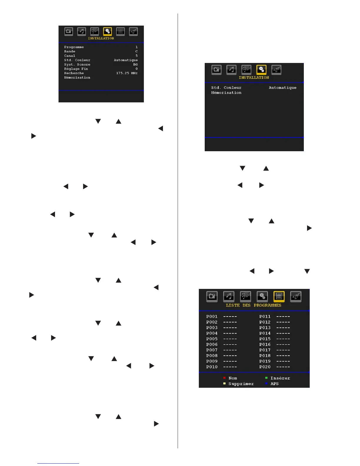 appuyant sur le bouton “ ” ou “ ” Pressez “ ” pour