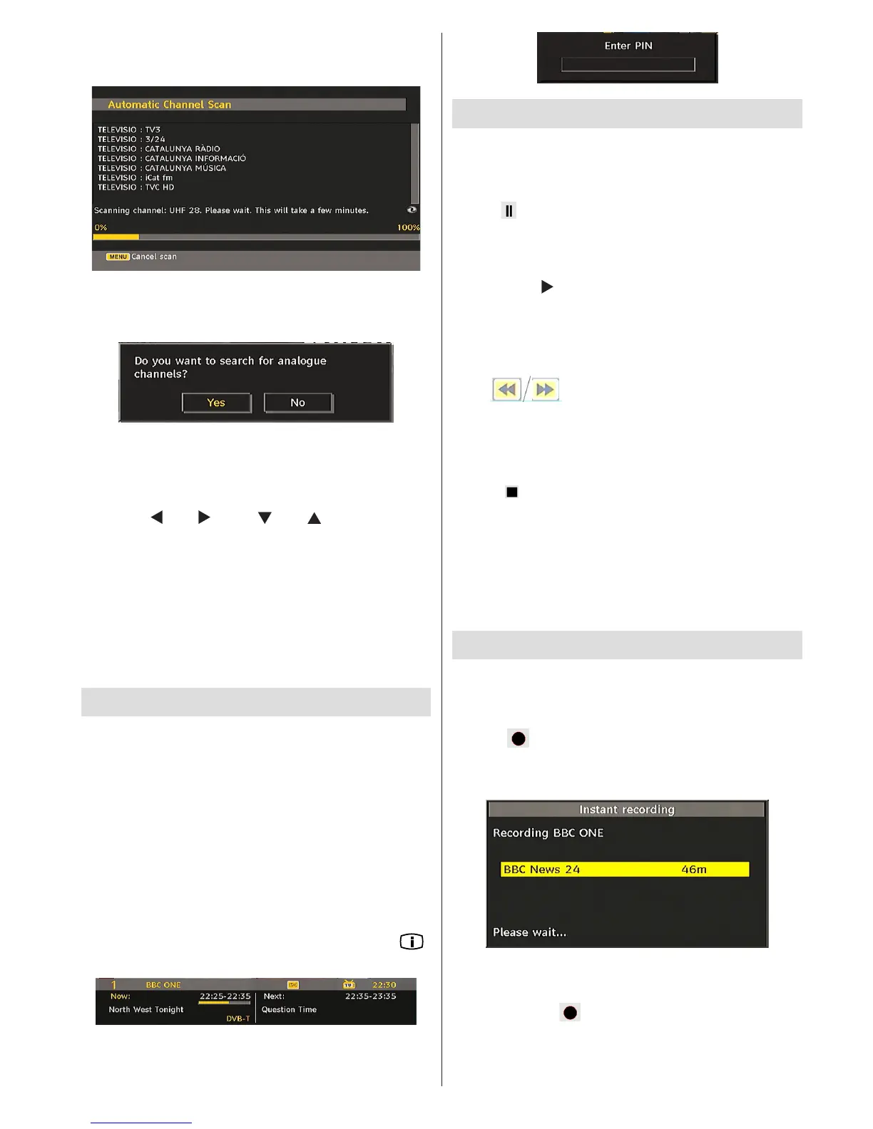 displayed to search for analogue channels.