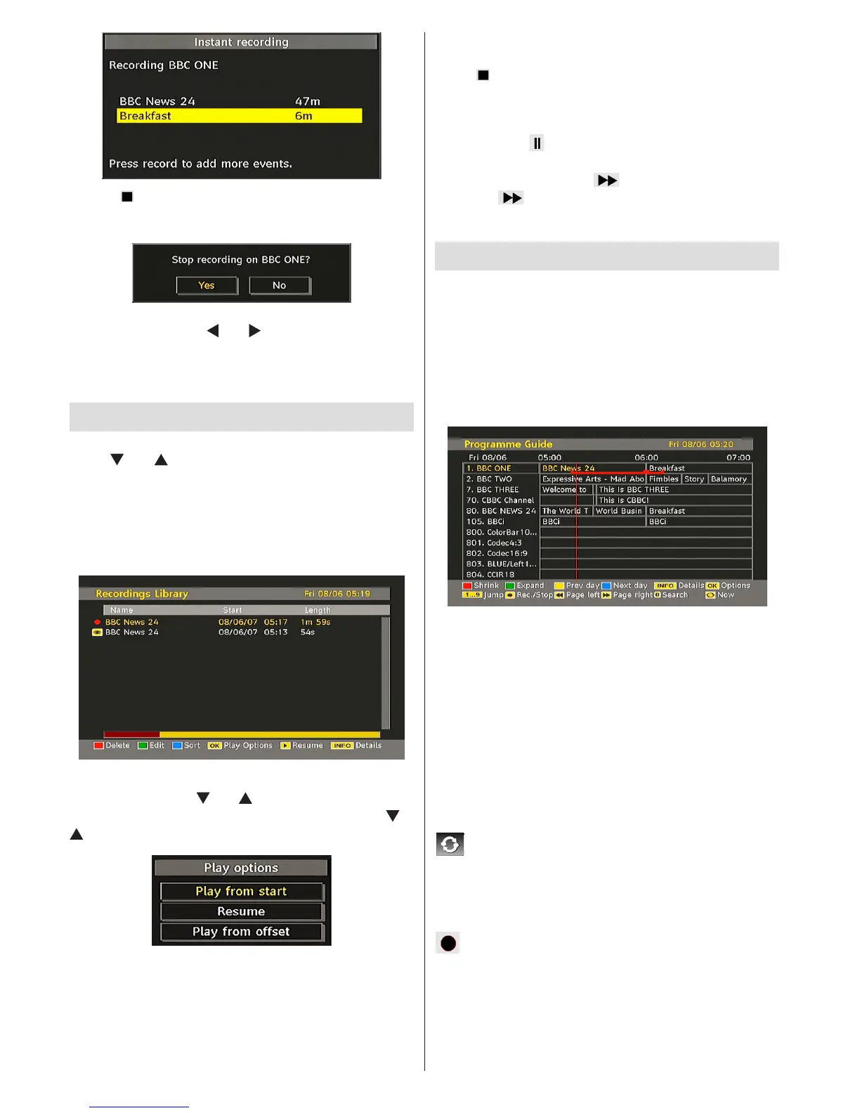 (Record): the TV will record the selected