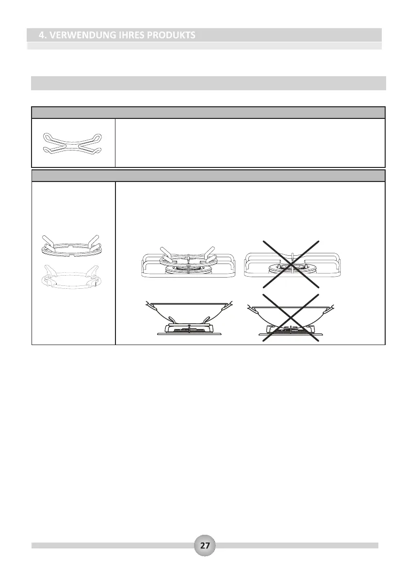 WARNUNG: Wok-Pfannen ohne Wok-Adapter zu verwenden, kann zu