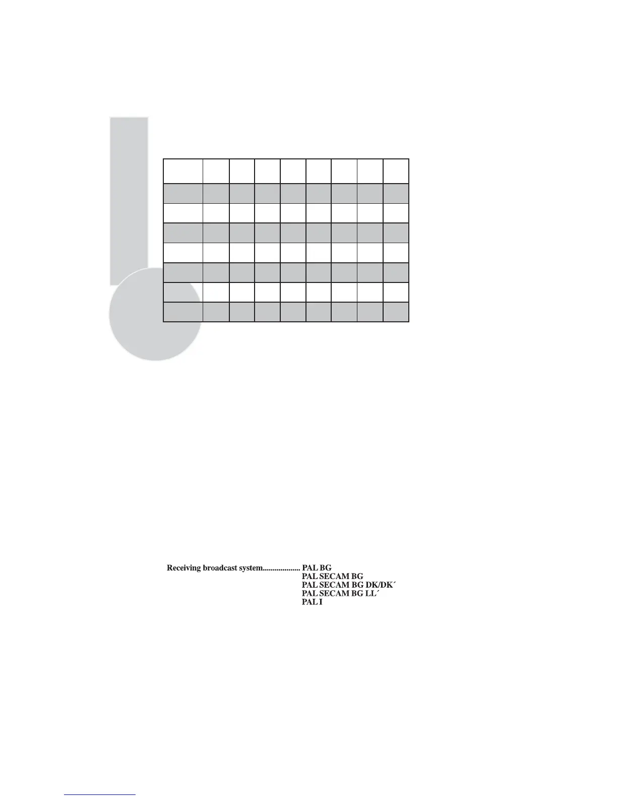 Sound Systems...................................... Mono/Stereo/NICAM (optional)