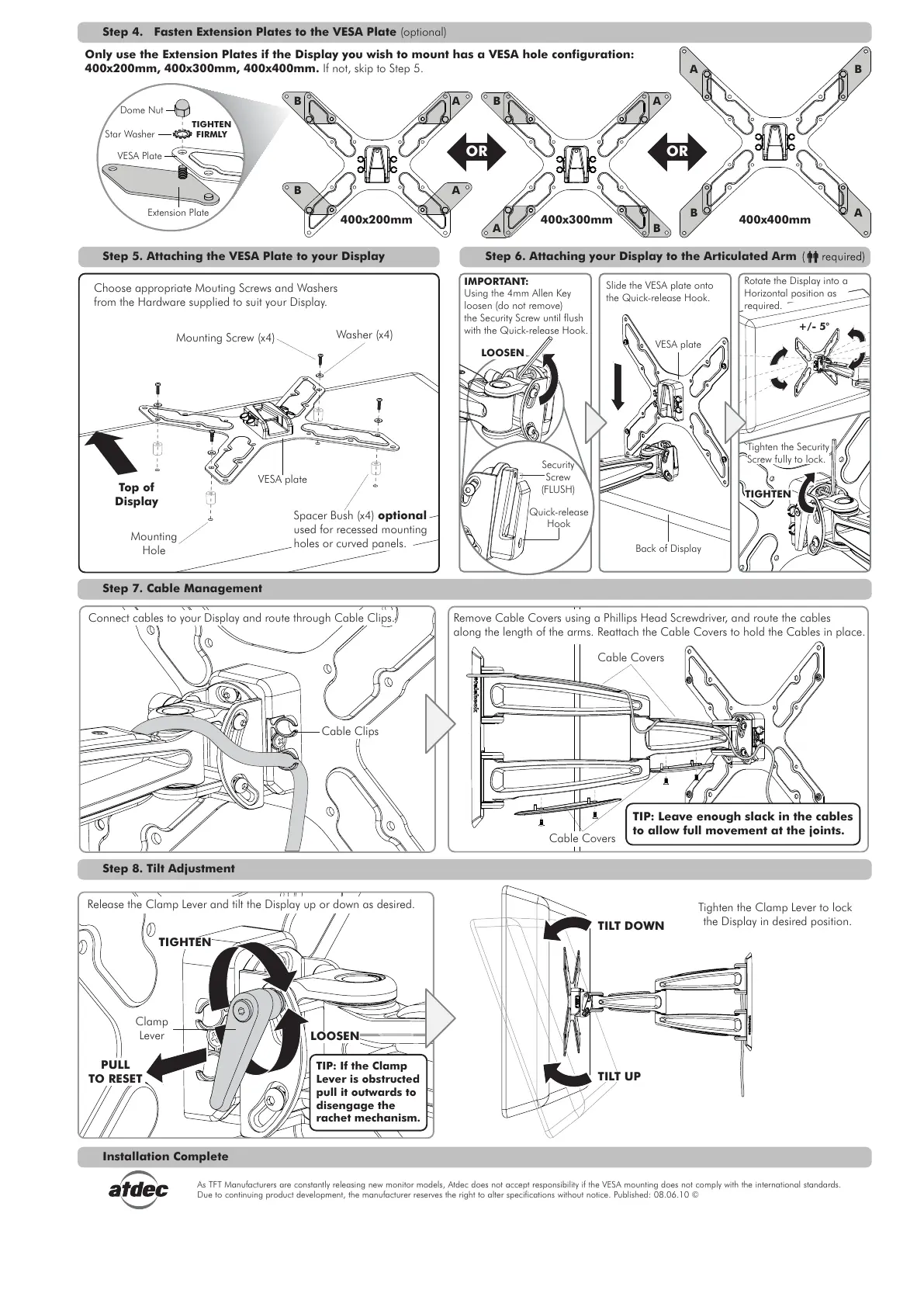 As TFT Manufacturers are constantly releasing new monitor models, Atdec does not accept responsibility if the VESA mounting does not comply with the international standards.