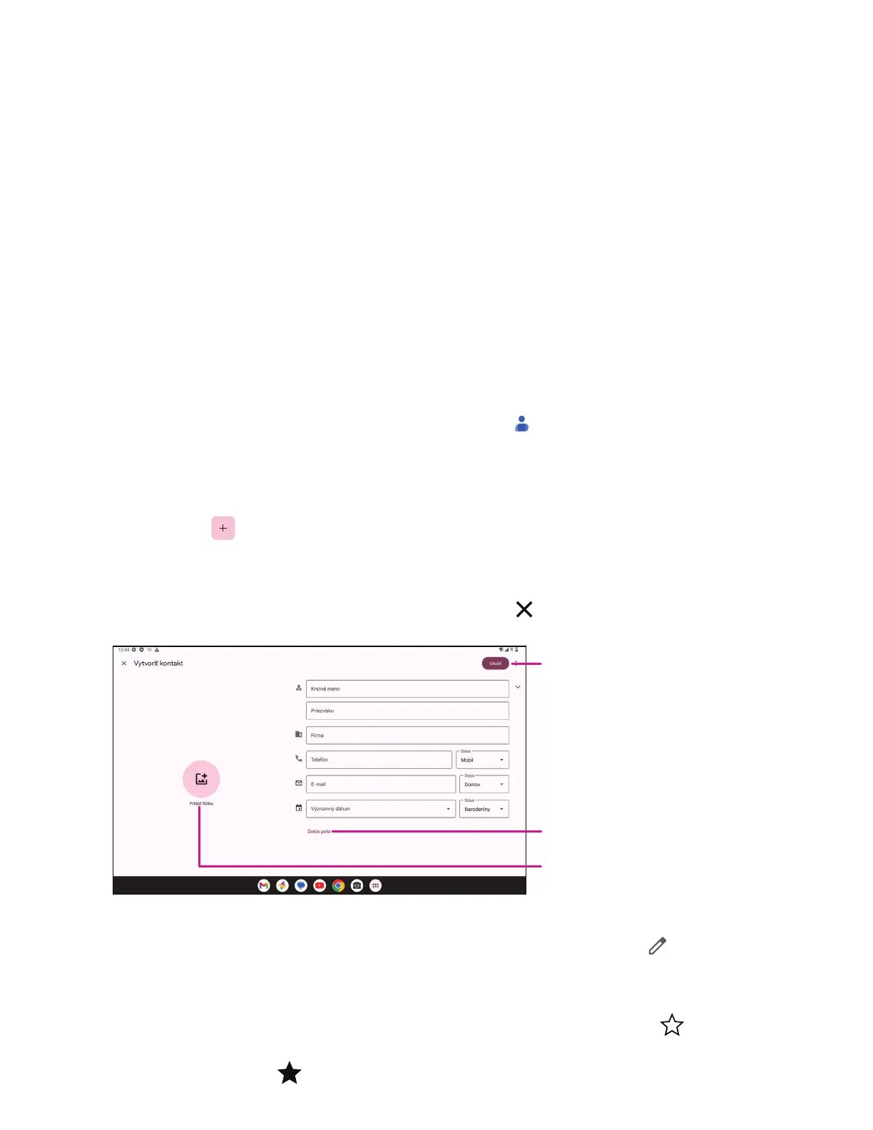 • Dotknite sa položky vzozname kontaktov avytvorte nový kontakt.