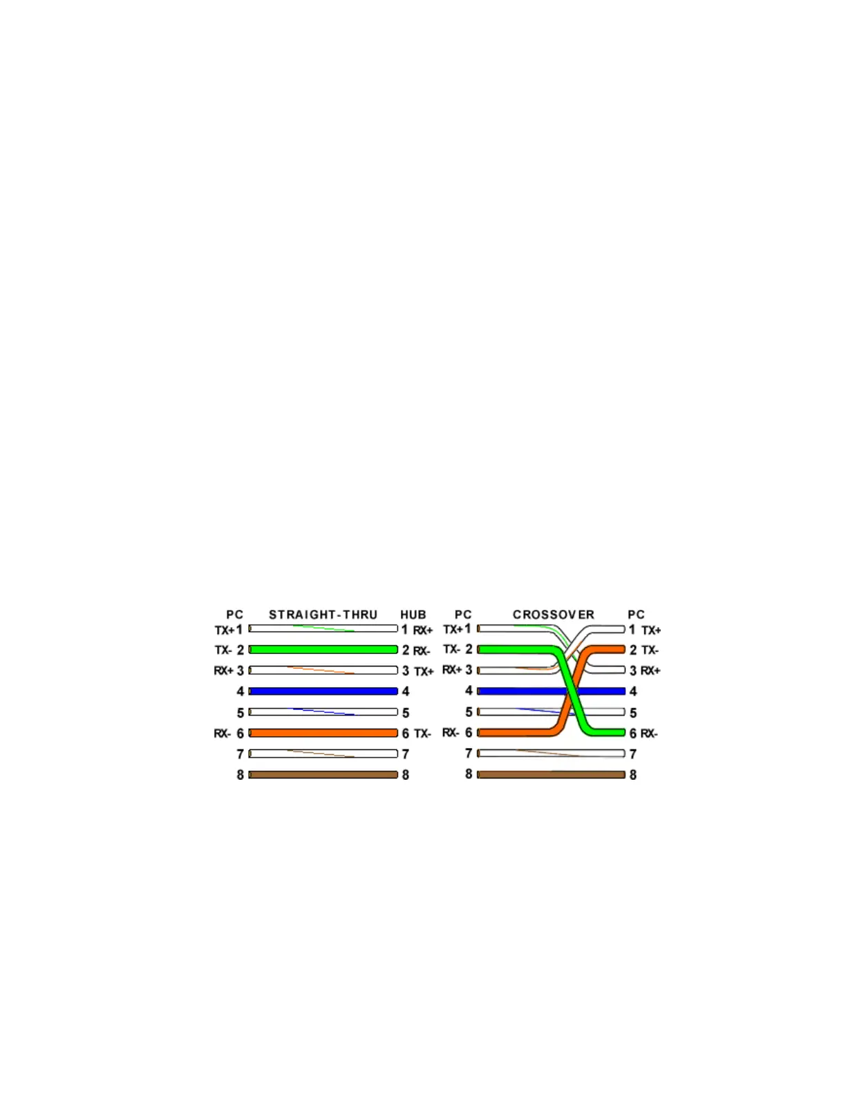 crossover cable with a T-568B end, we see that the TX (transmitter) pins are