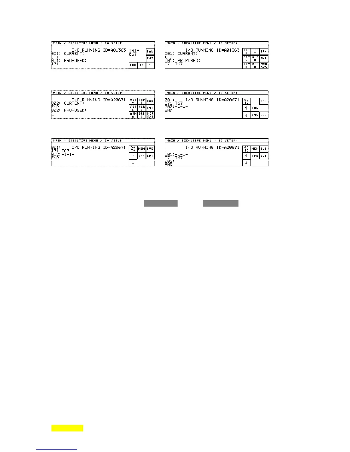 entry point for I/O Programming. Press ↑. the fixed front panel STATUS key to leave.