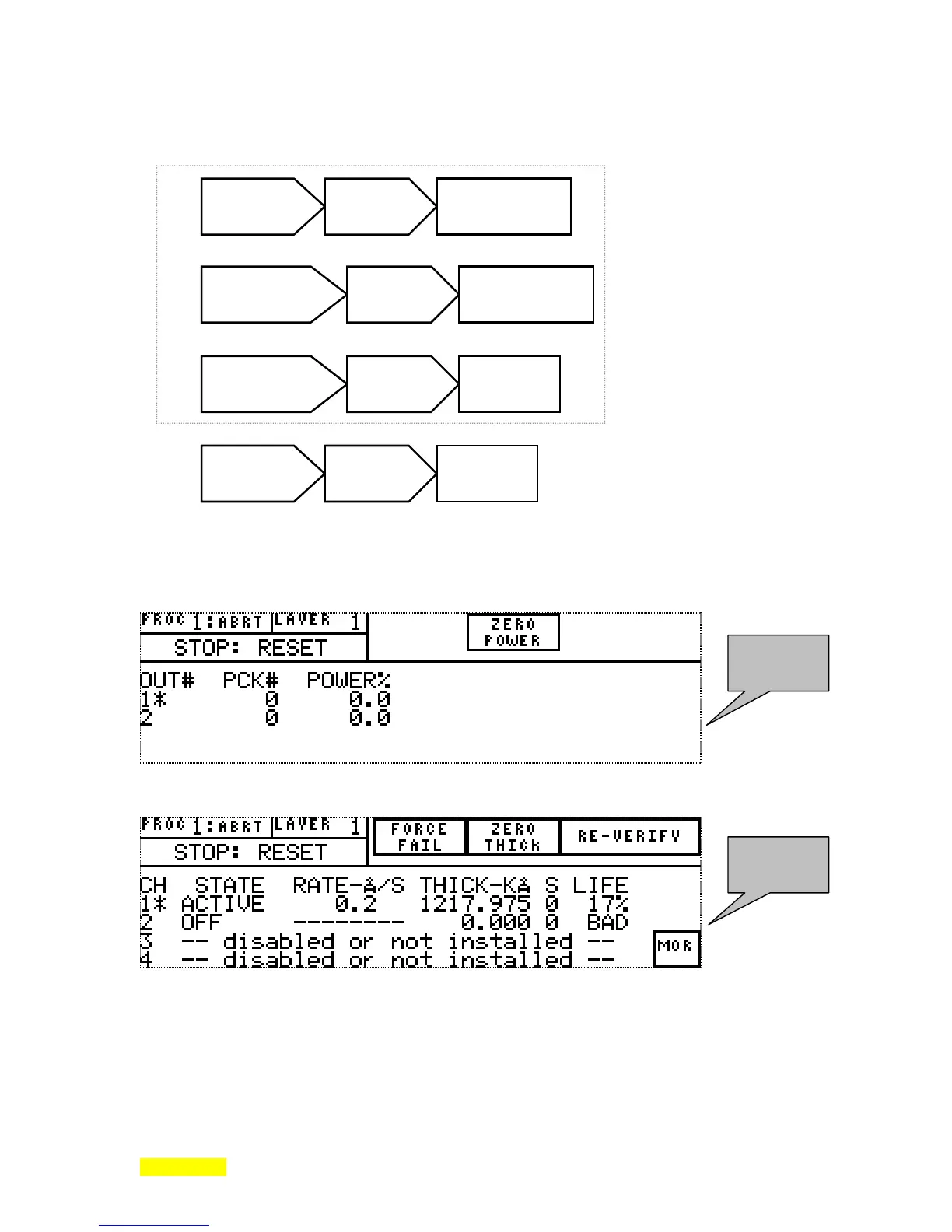 MANUAL key while running a deposition cycle. The text MANUAL appears on the screen in place of the