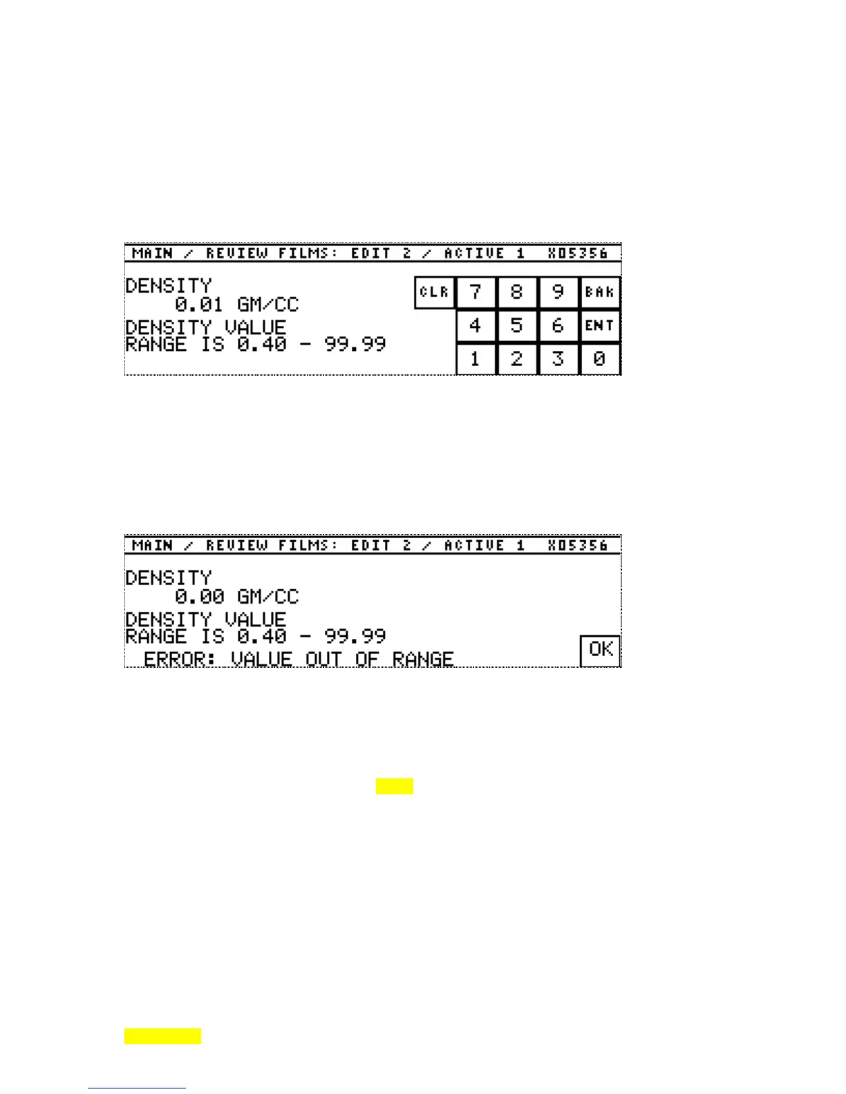 VALUE OUT OF RANGE". The legal range of values message is presented, as previously described, as a