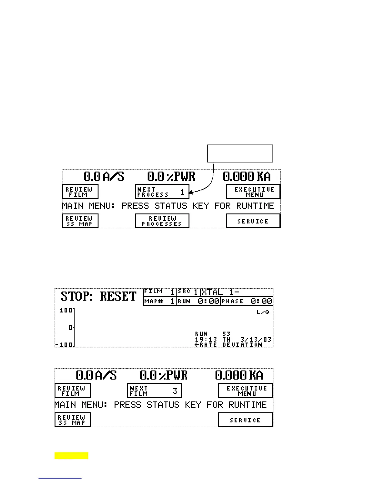 Note that the "Next Process" label has changed to "Next Film" and that the Review Processes key have