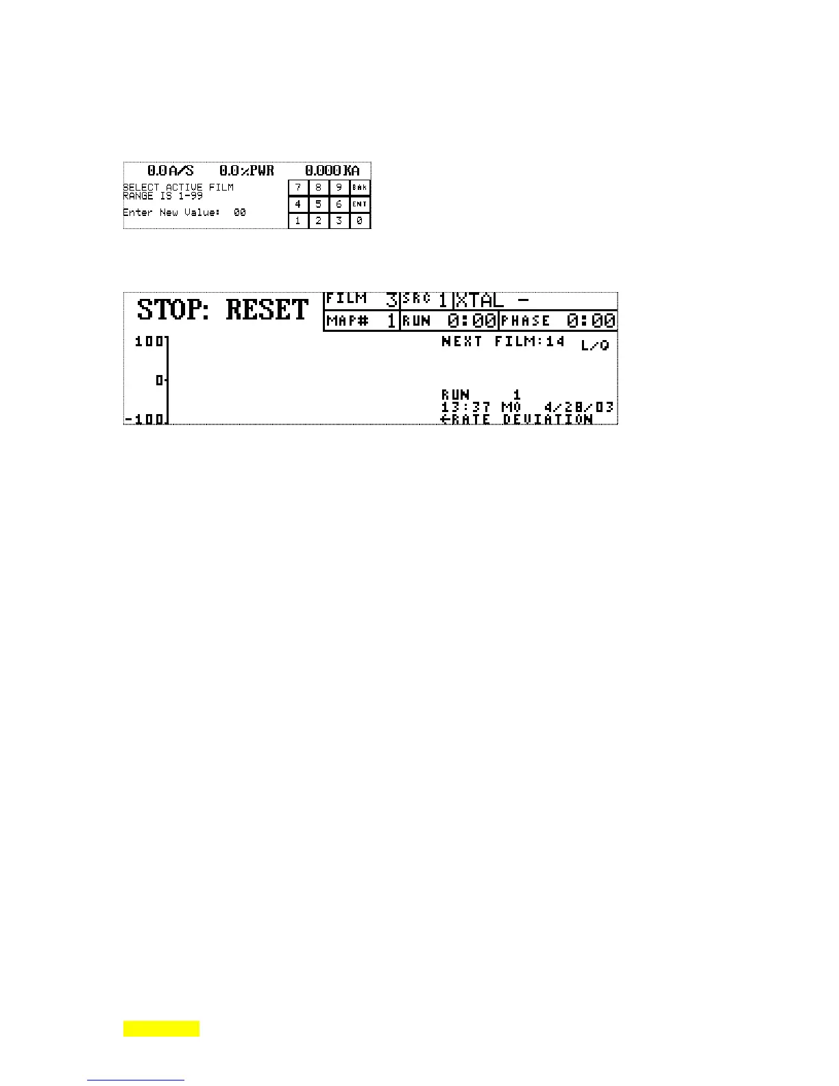Pressing the NEXT FILM key brings forth the numeric entry screen that is used to select the next active