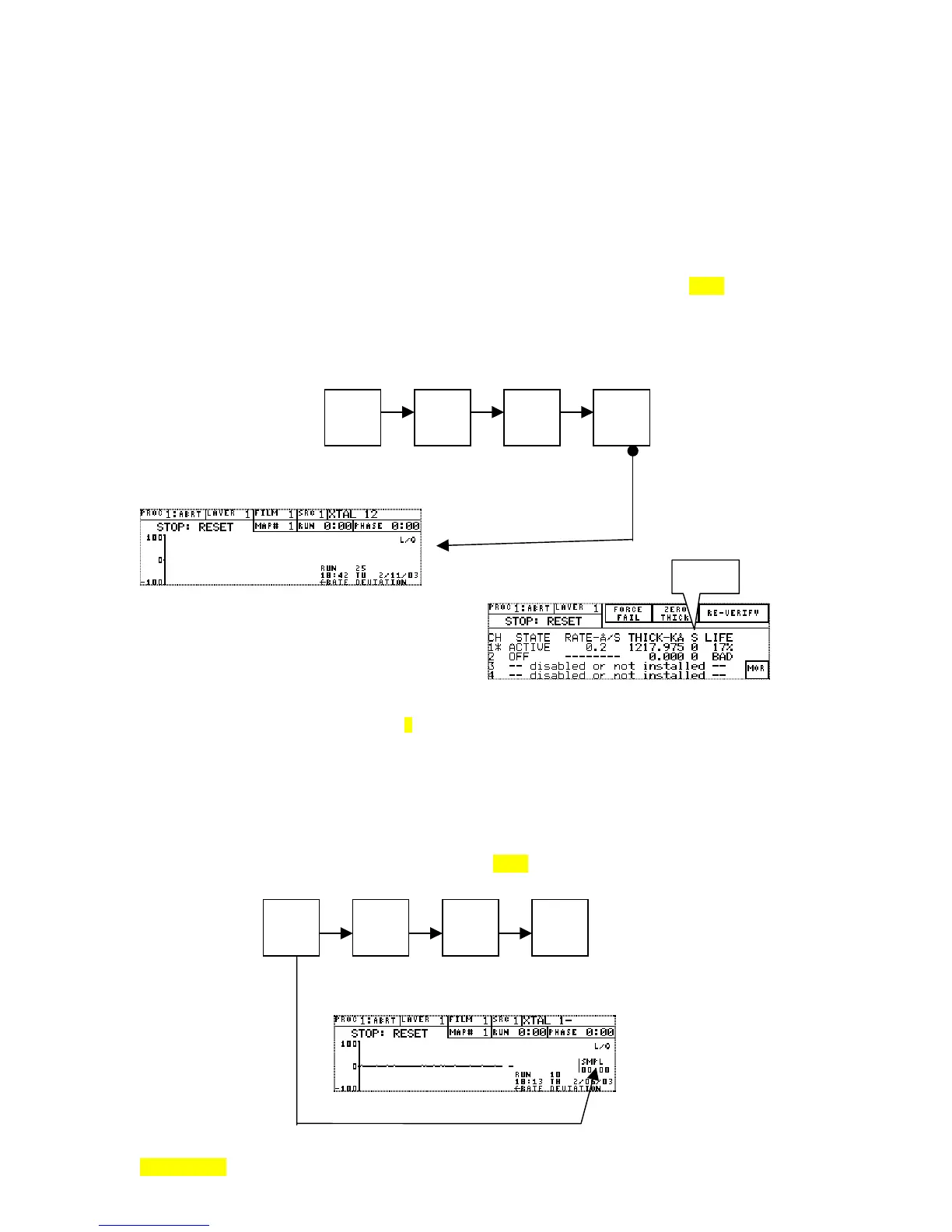 operation and the associated parameters (MAIN/REVIEW FILM).