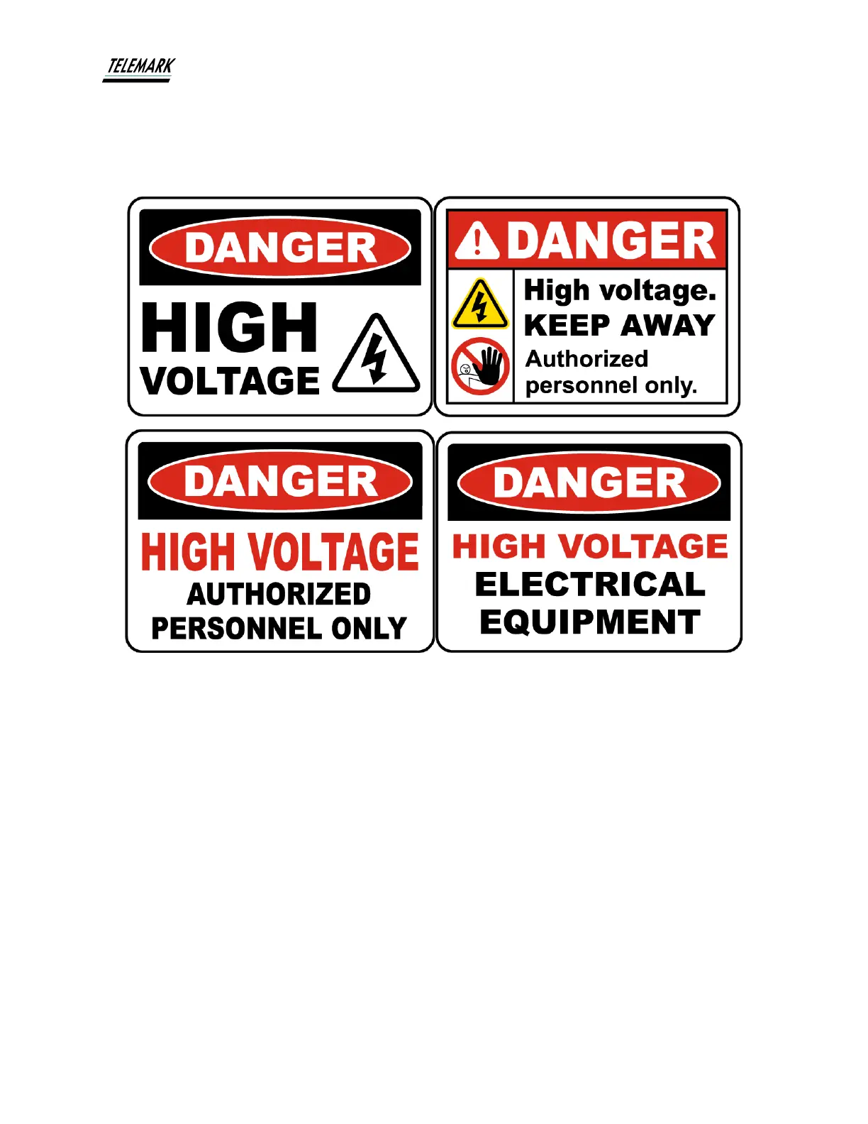 Telemark ST Series - Figure 1-2, Examples of High Voltage Warning Labels