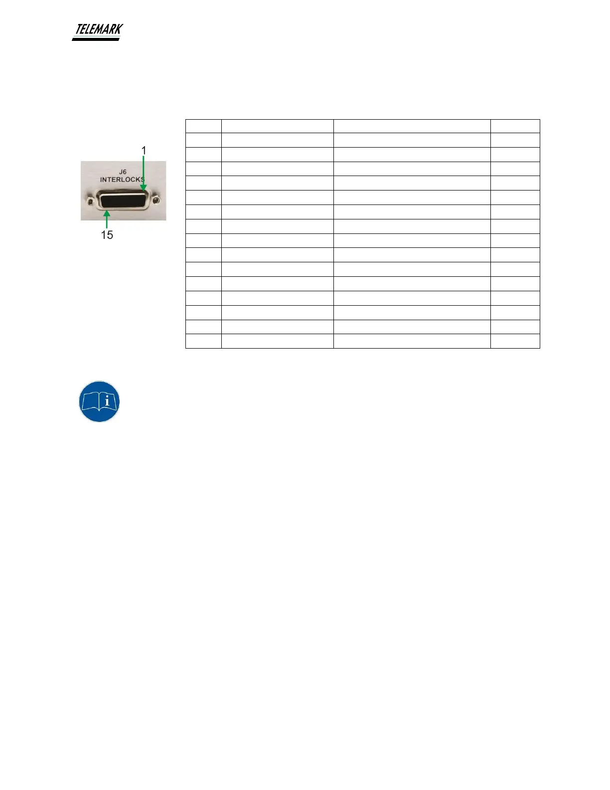 J6 – INTERLOCKS – External Safety Interlocks (15pin Sub-D M)