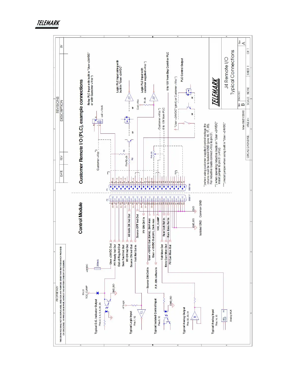Telemark ST Series - Figure 9-4, J4 Remote User I;O Connector
