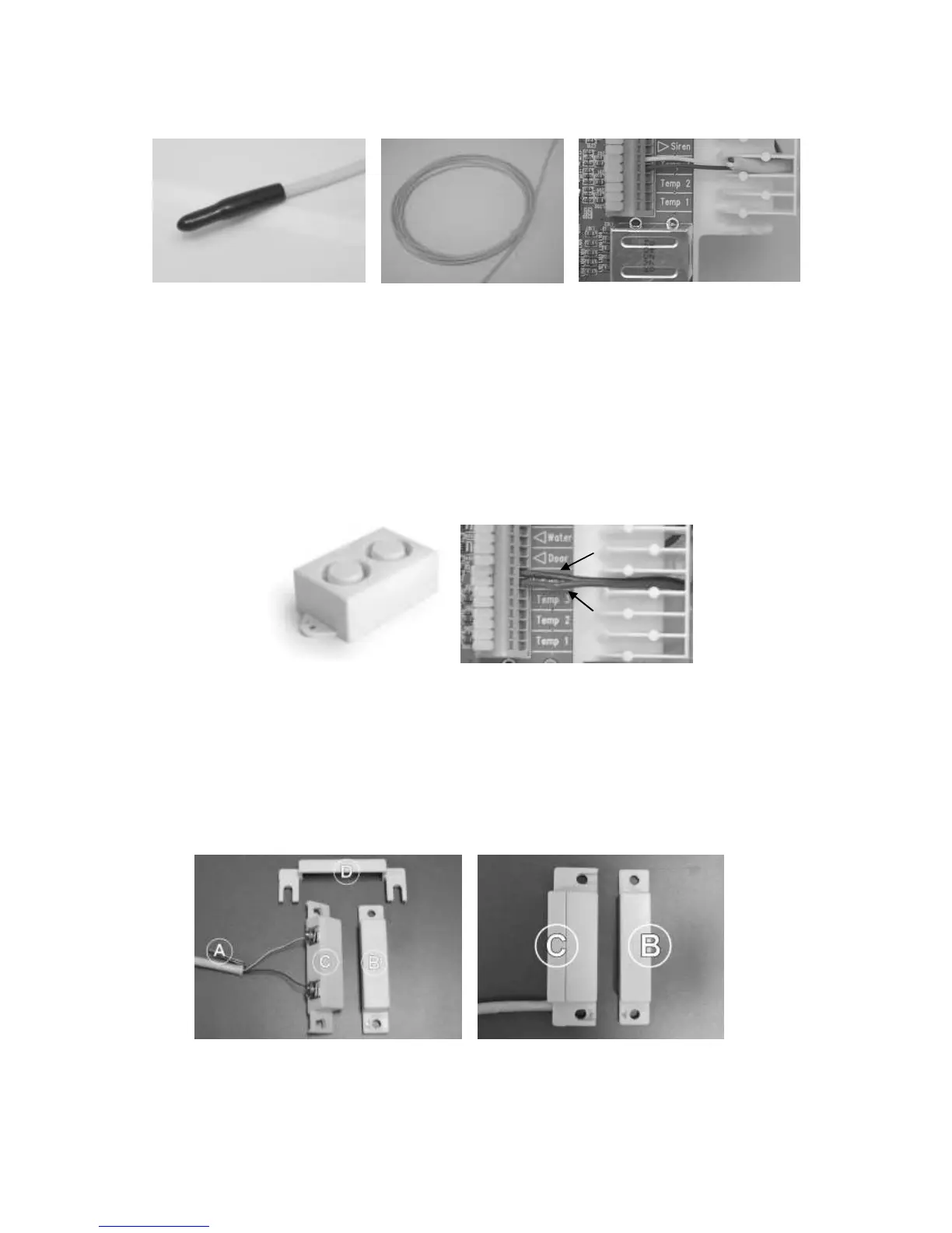Connect magnetic door switches in series as shown in the separate wiring diagram. Install them in doors
