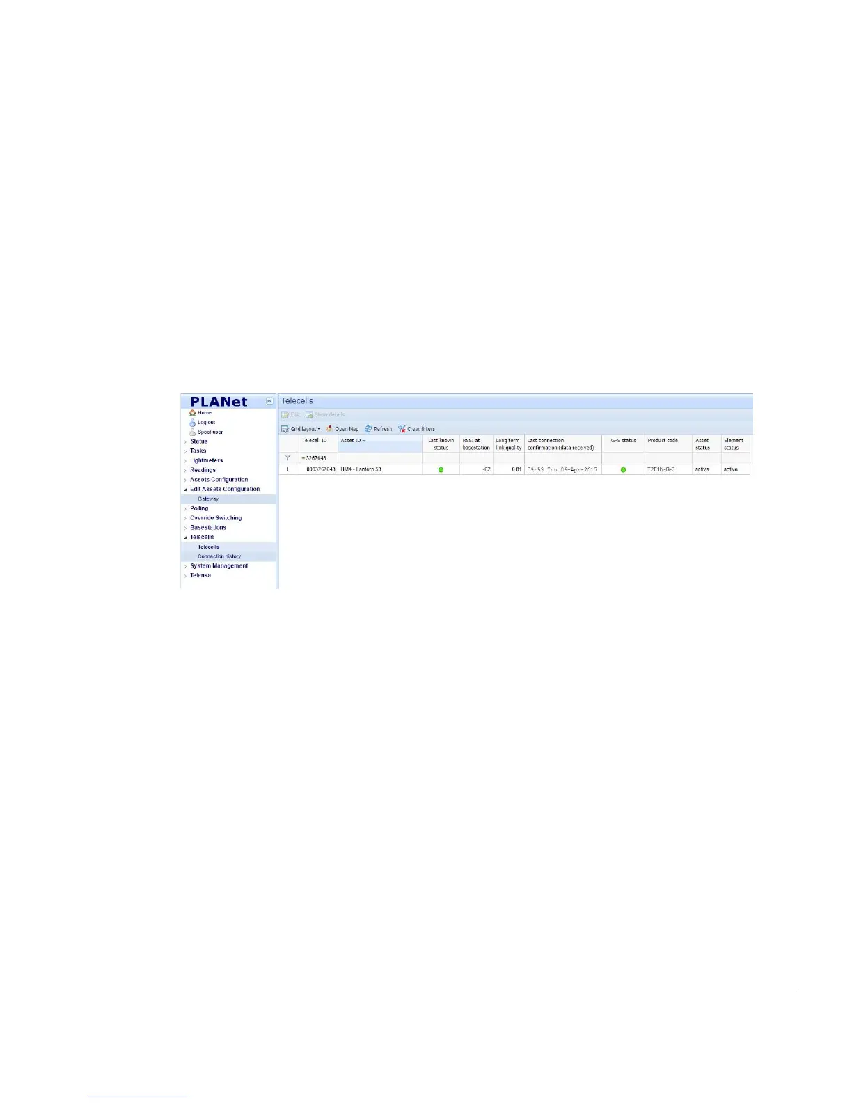 few hours. This can be confirmed by observing the Telecells Page within the User