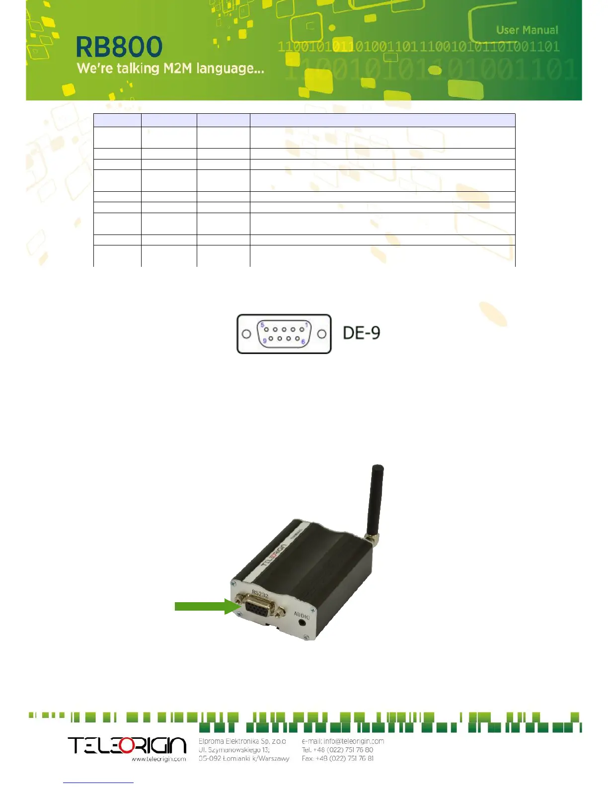 Table of RS-232 DB9 pins: