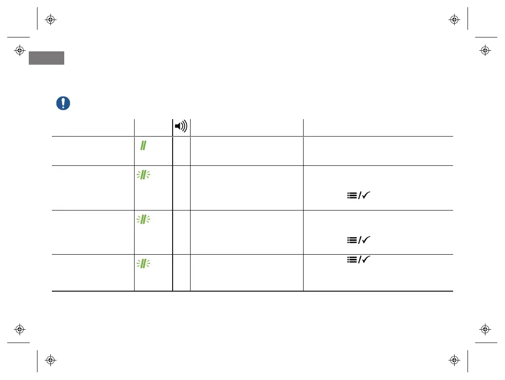 Das Gerät kann folgende Meldungen anzeigen. Diese werden von entsprechenden akustischen Signalen begleitet.