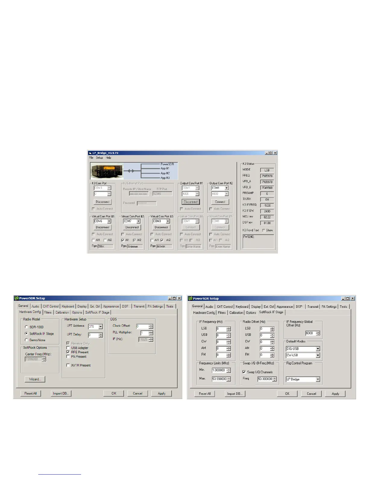 The following assumes that you will be using PowerSDR/IF Stage and LP-Bridge...