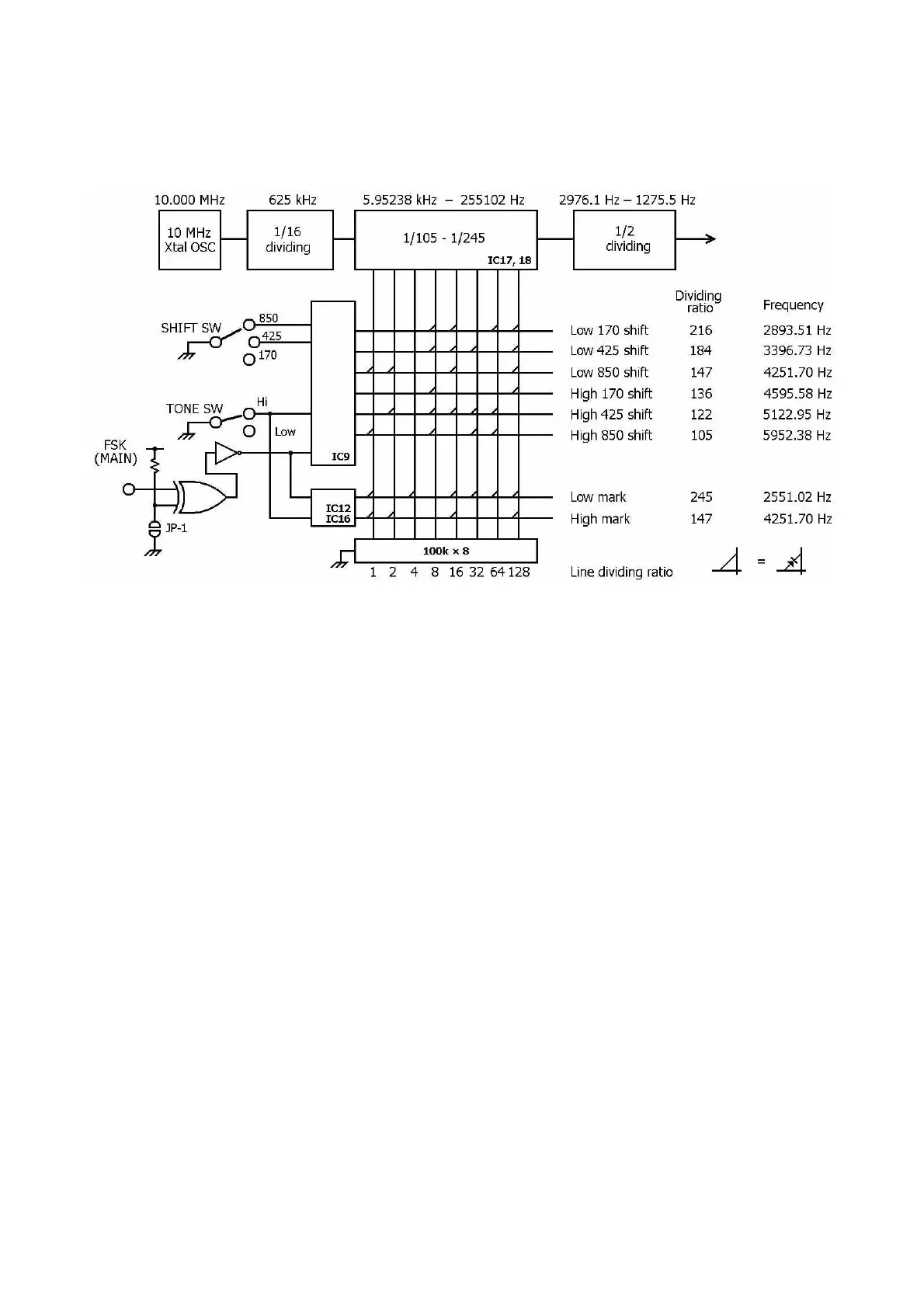 The dividing output of IC17, 18 is the total of dividing ratios in all lines where diodes are provided„