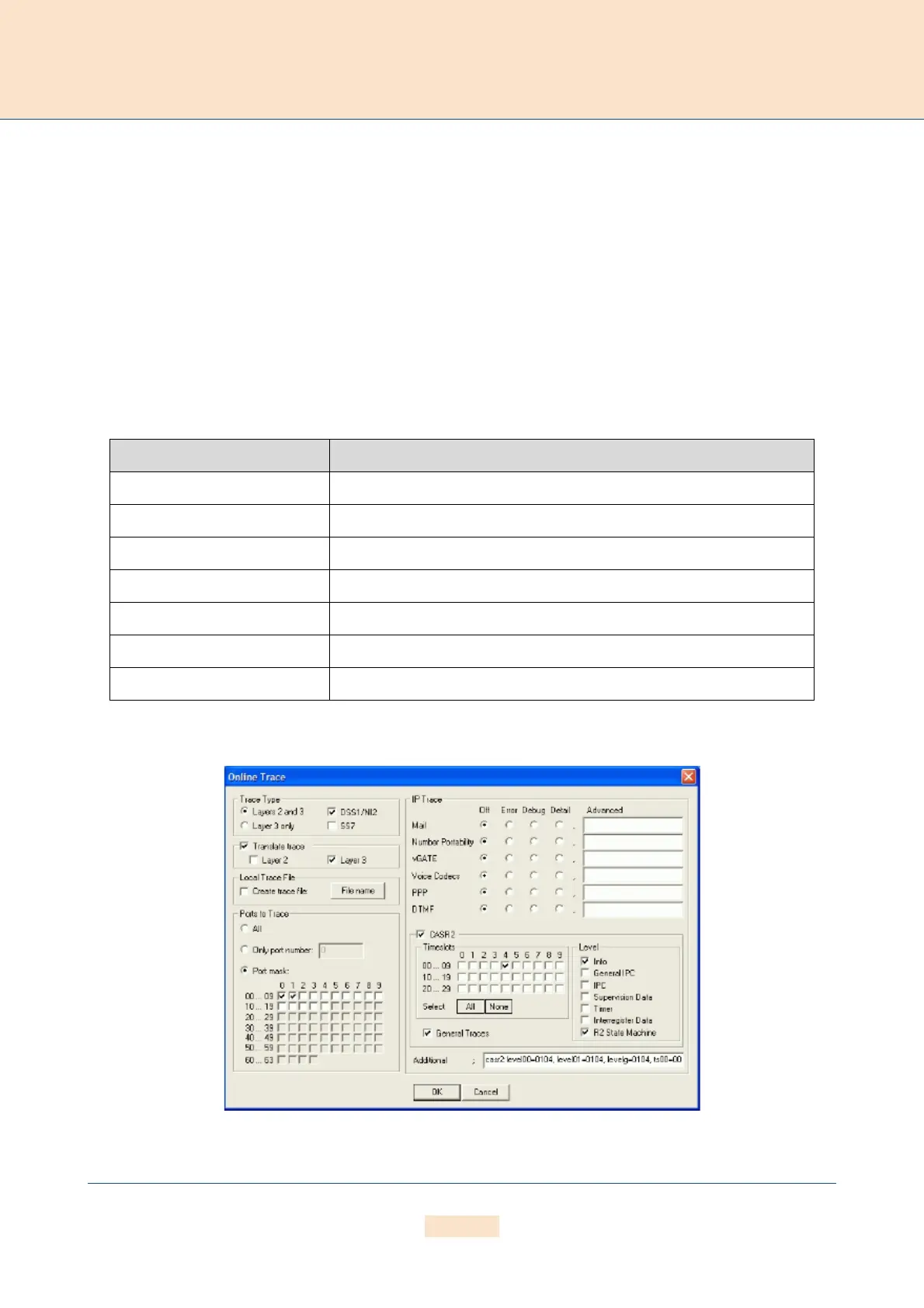 mands (see Chapter 4.11.3 ). Trace results presented here are for BRI, analog, mobile and VoIP interfaces, and
