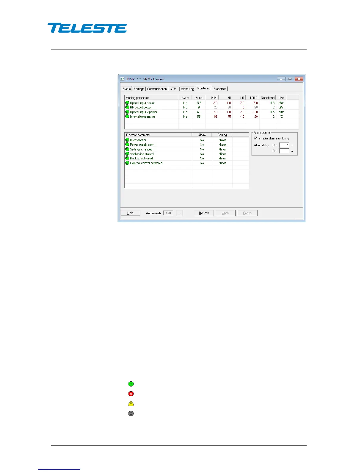 See "Monitored parameters" chapter for descriptions of CXE85x alarms.