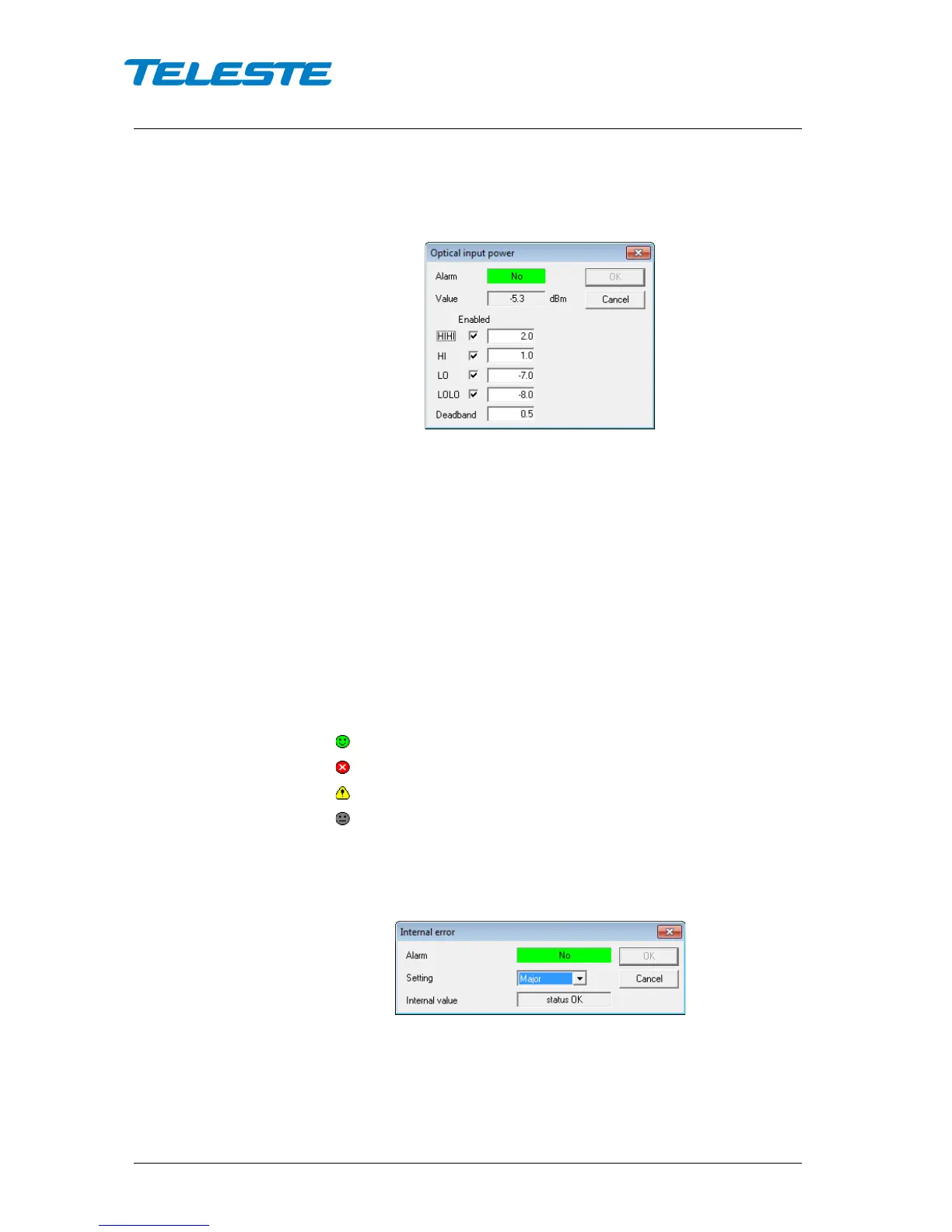 Alarm: Alarm status of the parameter: No / Minor / Major. If the alarm is