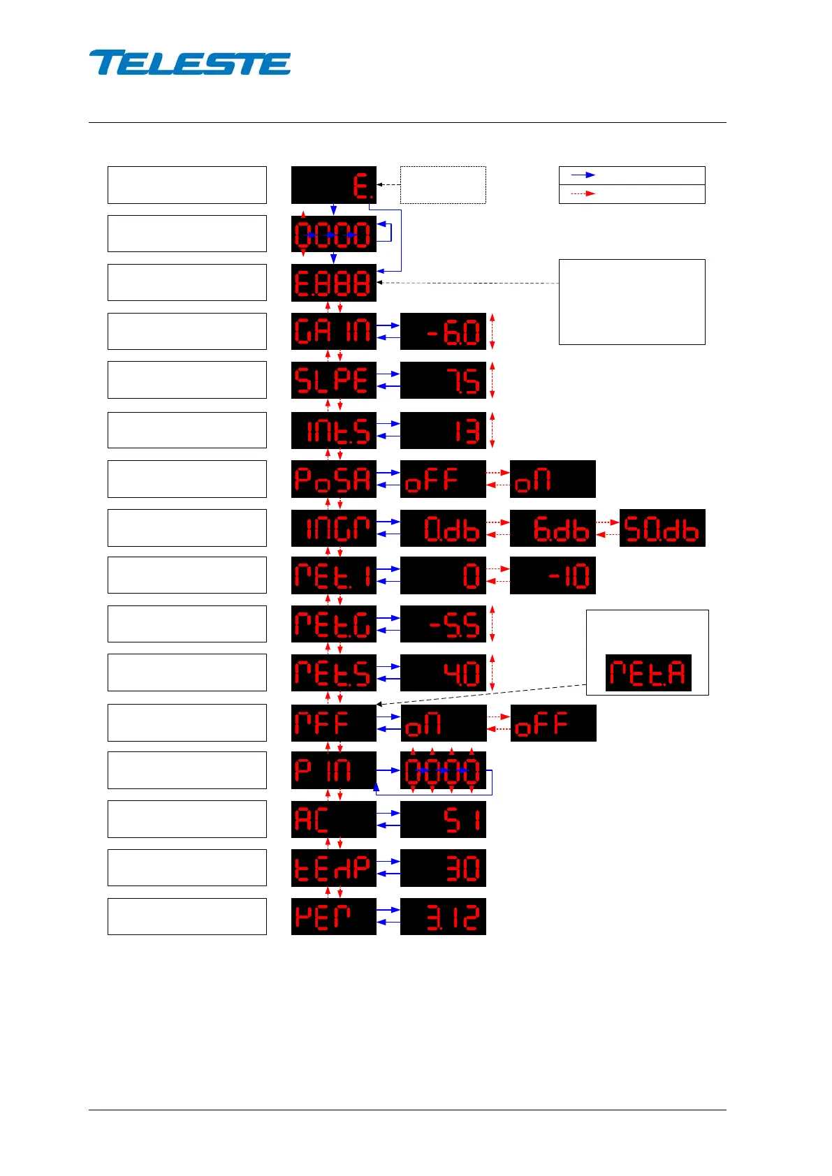 Figure 5. E3 local user interface menu structure. Factory default values are in bold.