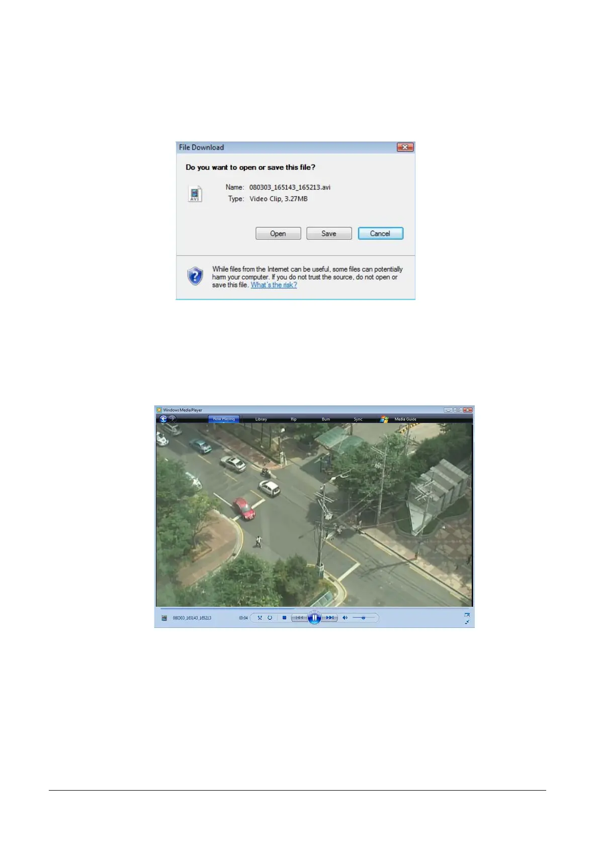 1. Selecting an AVI file will show a dialog for opening or saving the file