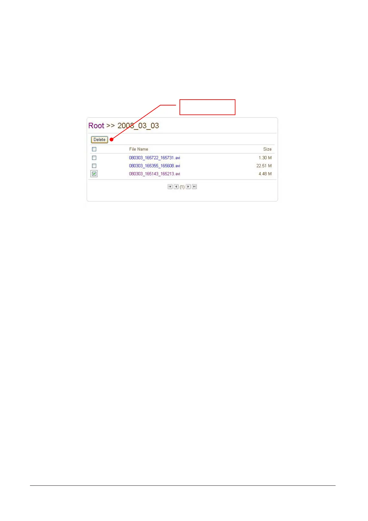 1. If you want to delete recorded files, select the files by checking the item in front of each file and press