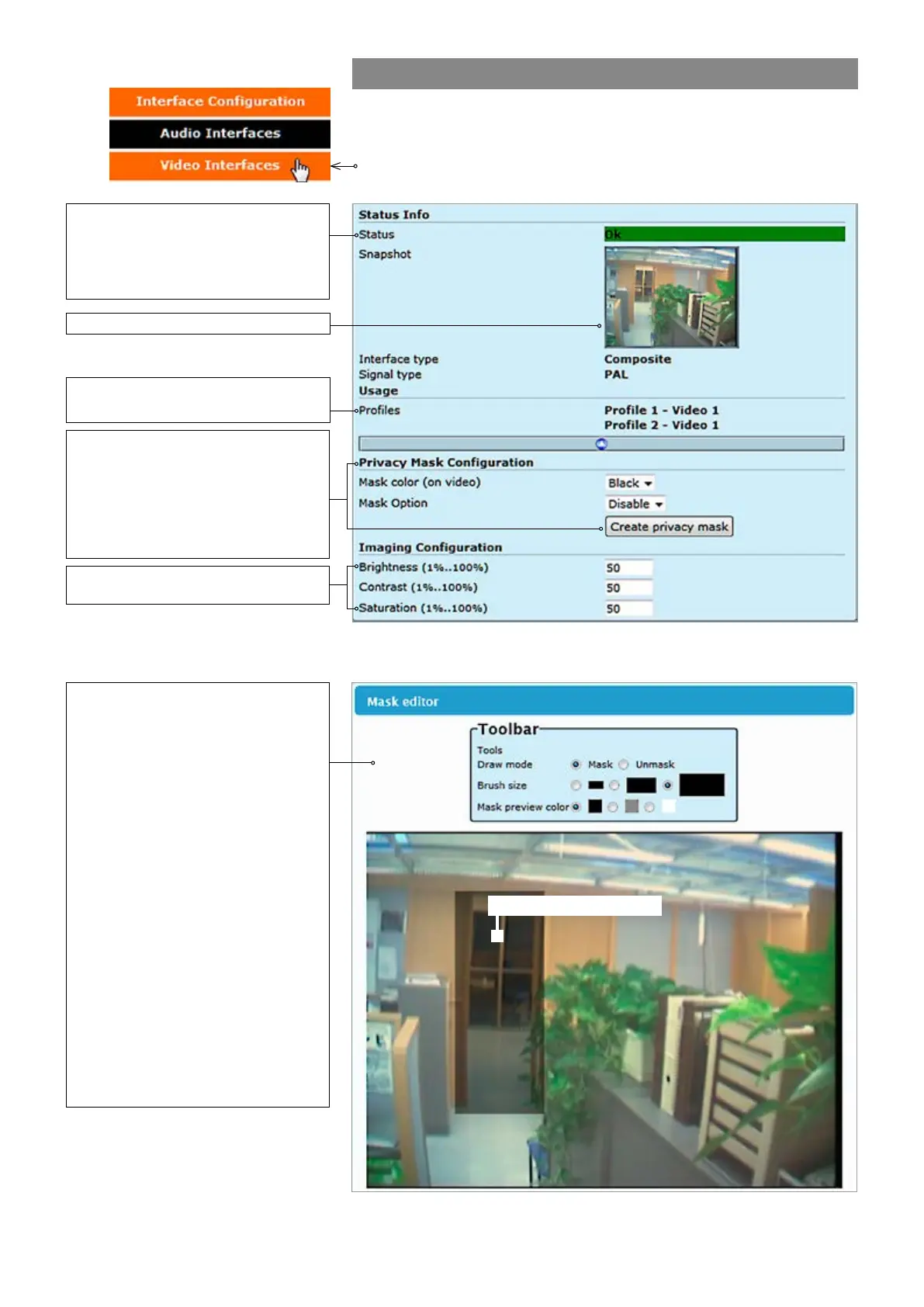MASK EDITOR page contains settings for hiding certain areas from the