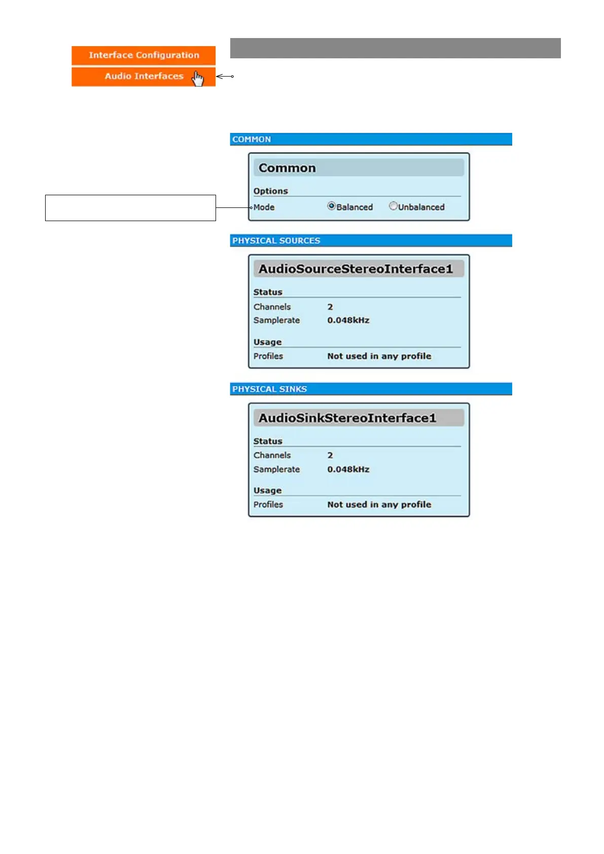 Click “Audio Interfaces” under the Interface Conguration menu. Audio