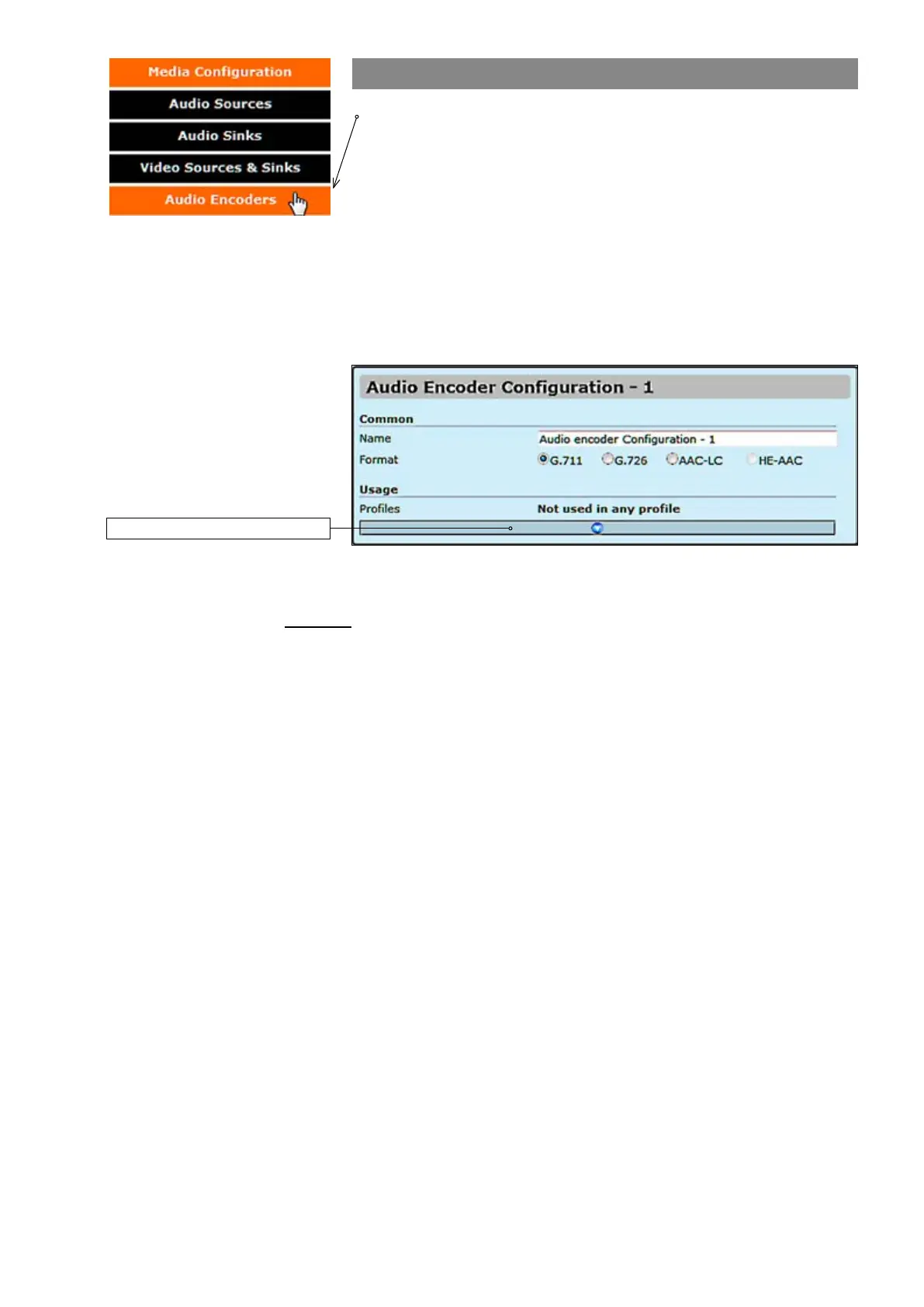 Click “Audio Encoders” under the Media Conguration menu. Audio