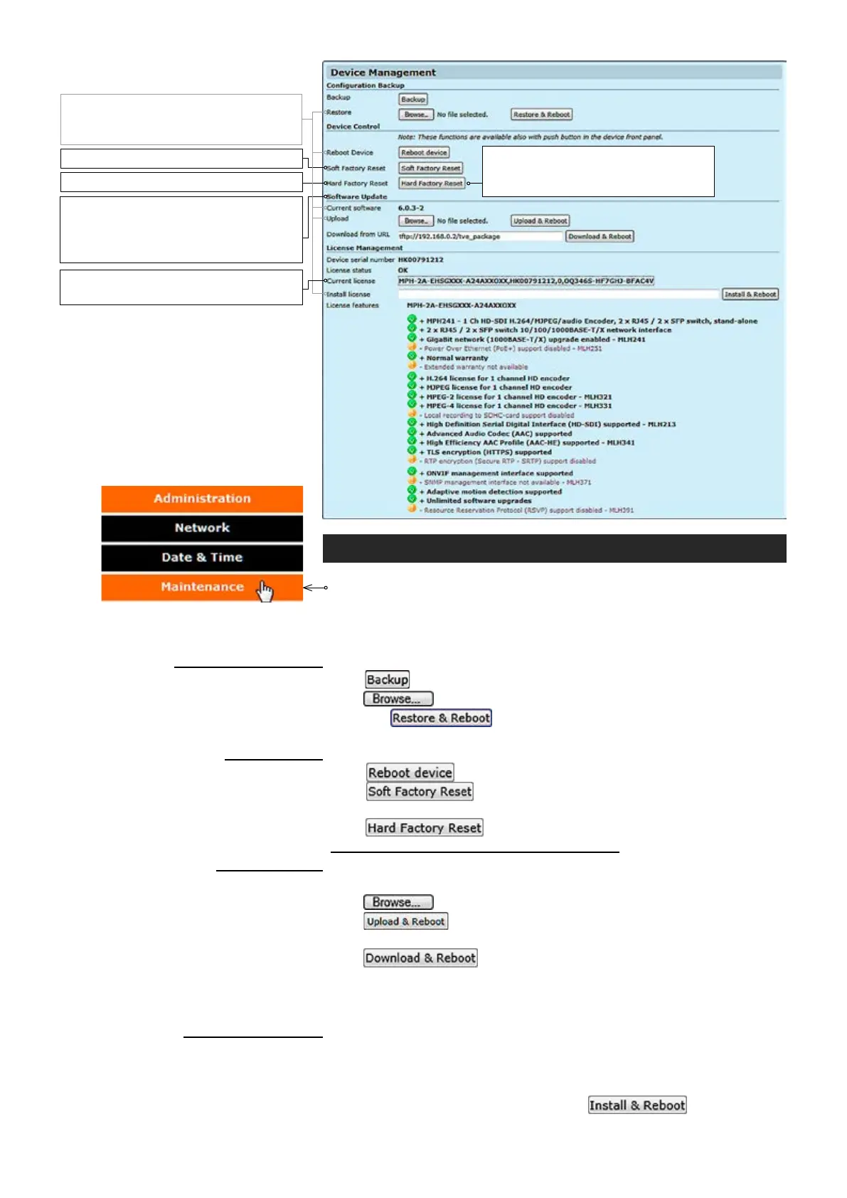 Click “Maintenance” under the Administration menu. Device