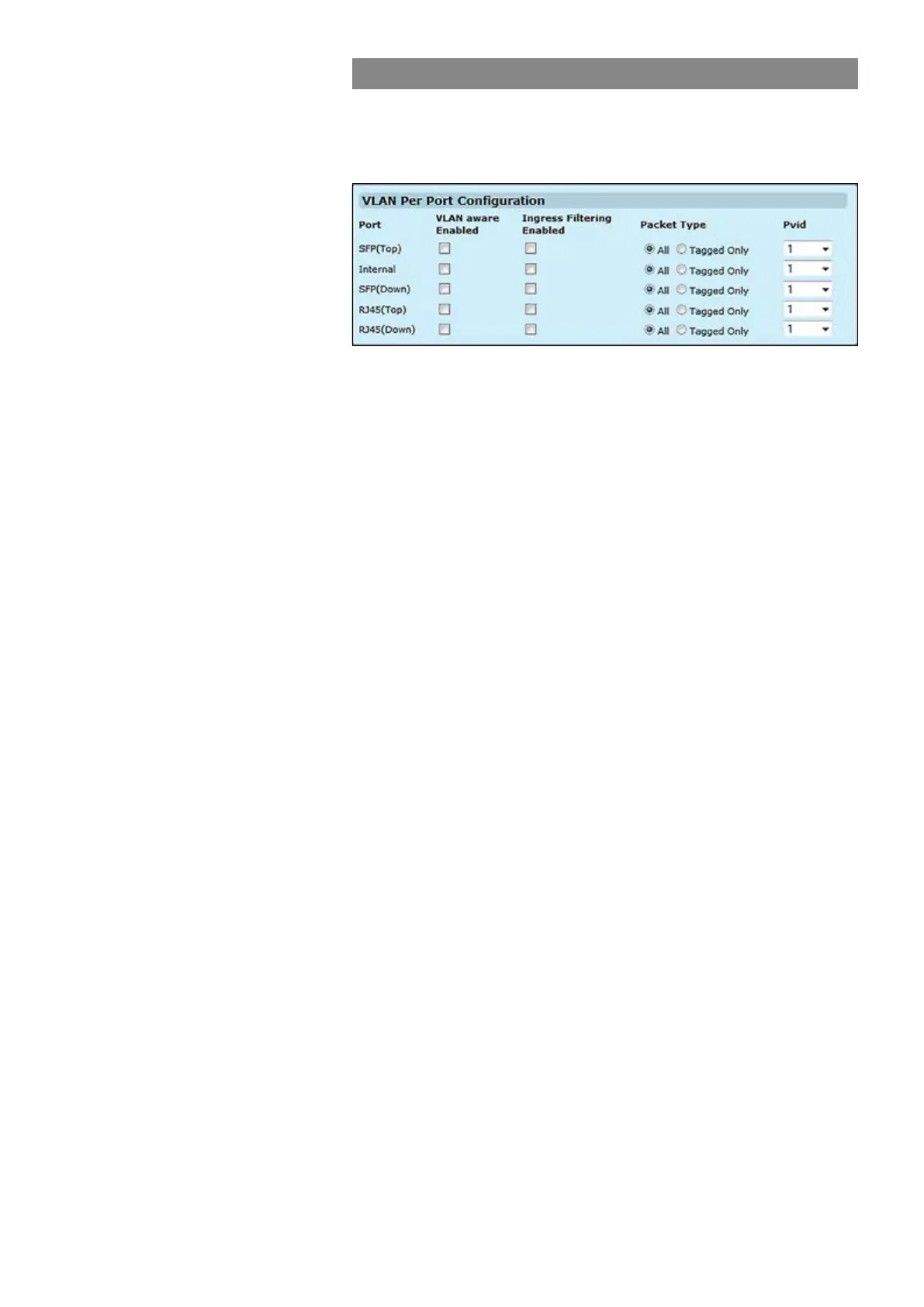 Click “Port Cong” button on the VLANs page. VLAN Per Port