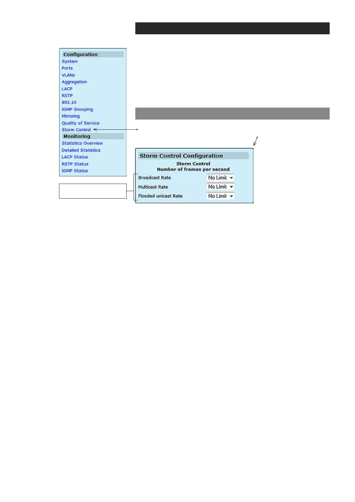 Click “Storm Control” under the Conguration menu. Storm Control