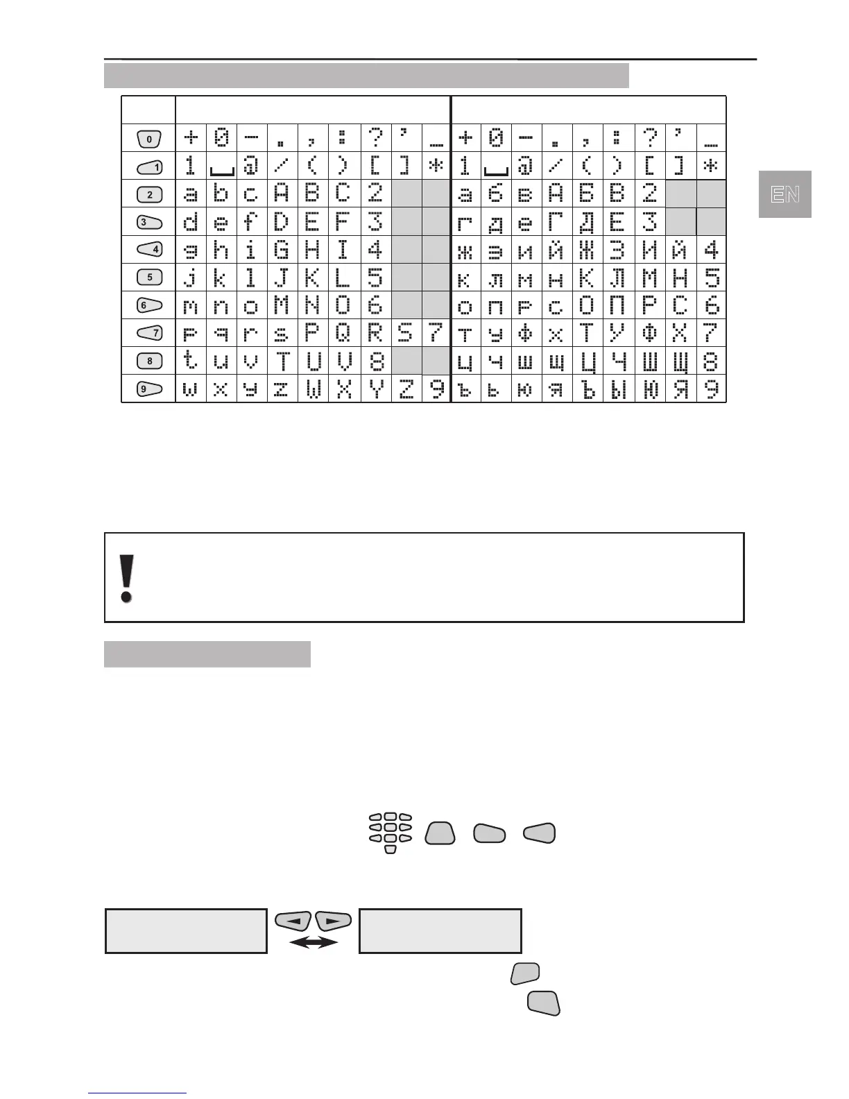 entering mode the button is repeatedly pressed until the required letter, digit or symbol