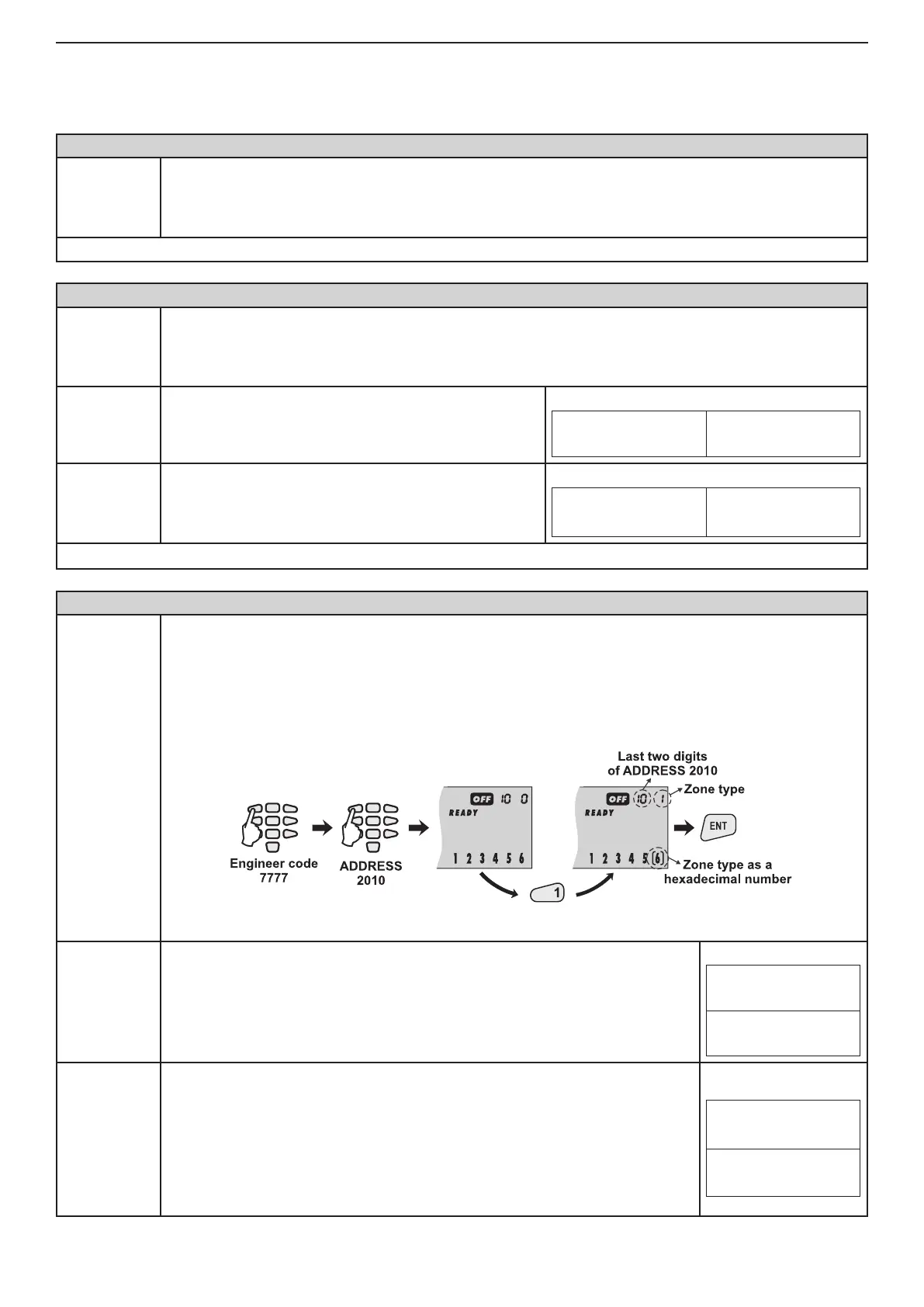 The zone type is set at this address. Only one type can be selected for a given zone. Press the